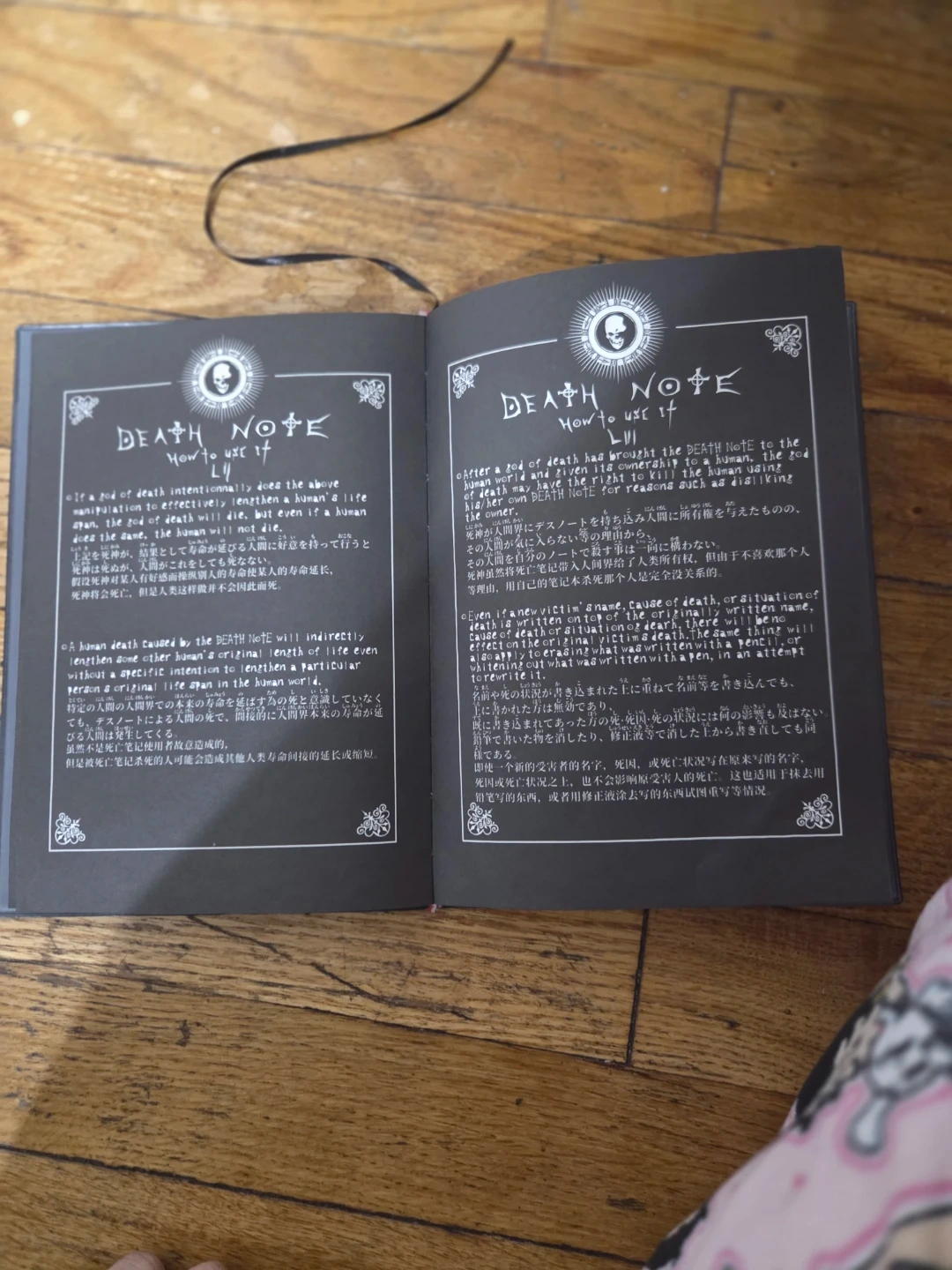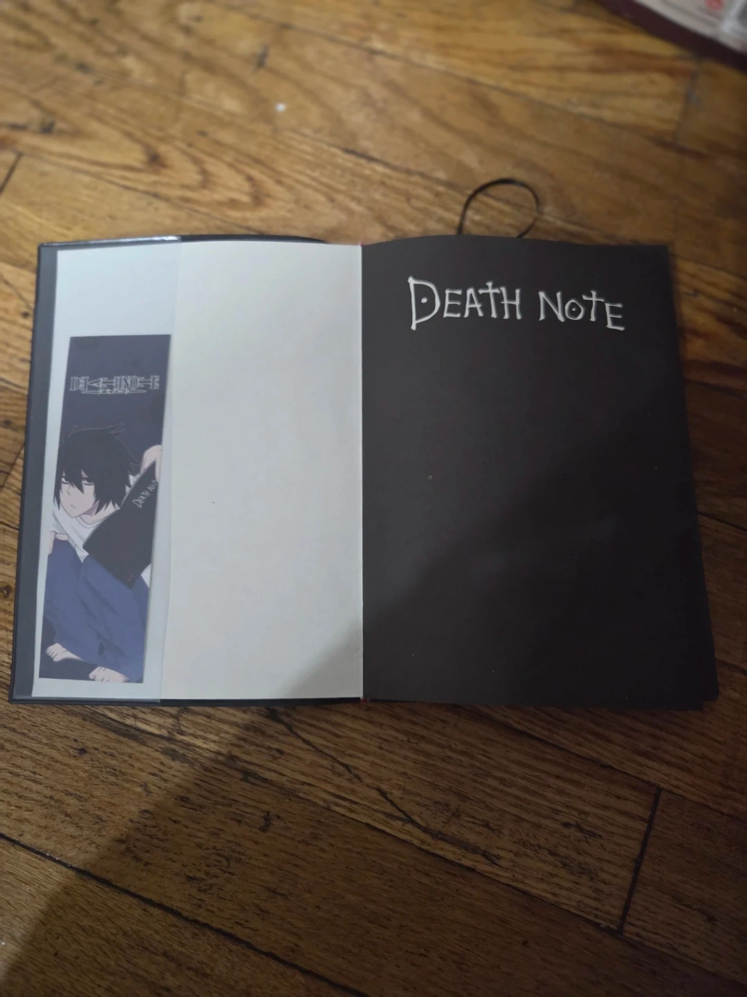 This is a Death Note notebook, inspired by the popular anime and manga. It's a replica item, perfect for fans of the series. It includes a bookmark with a character illustration. The pages are lined and ready for your own notes or creative writing!
