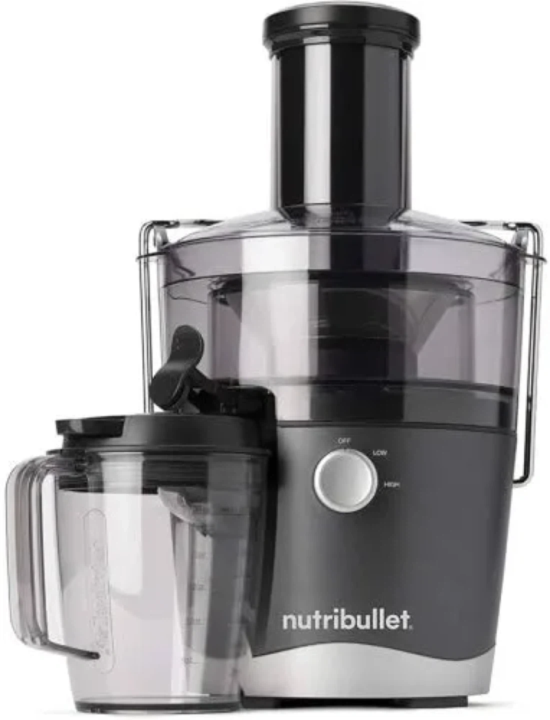 Make fresh juice with this NutriBullet juicer. It has a removable pulp bin and a large capacity juice pitcher. Easy to clean and operate!