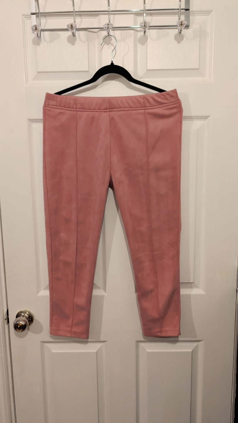 This pink faux suede moto jacket features a cozy fur collar and silver hardware. It includes a belt at the waist. Matching pink faux suede pants also available.