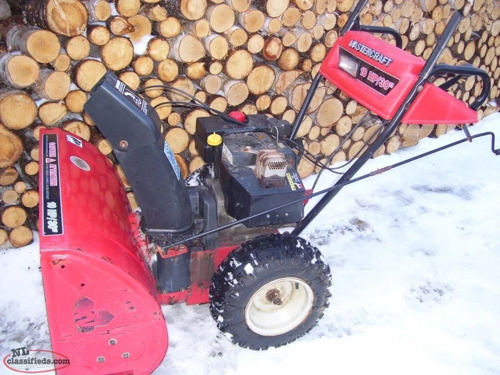 Mastercraft snow blower with a 10 HP engine and 28" clearing width. This machine is built tough for Canadian winters. It's ready to tackle heavy snowfall with ease!