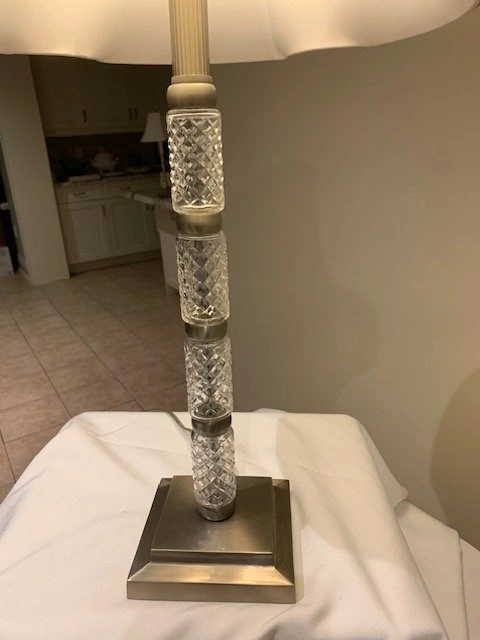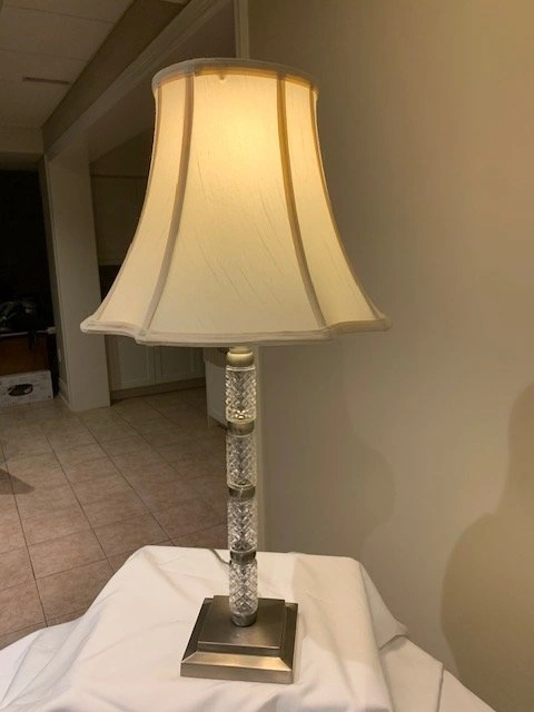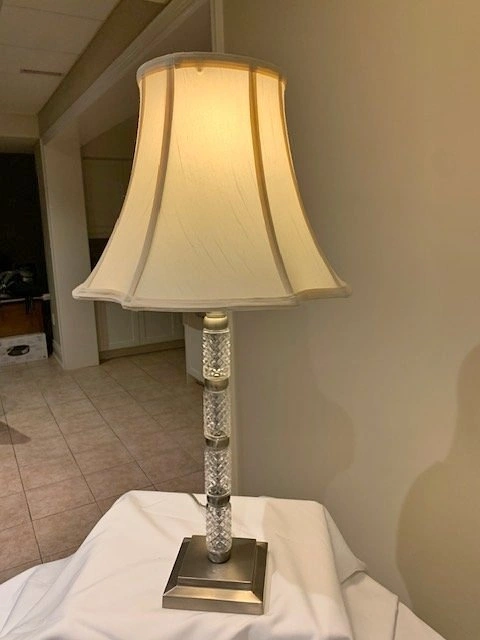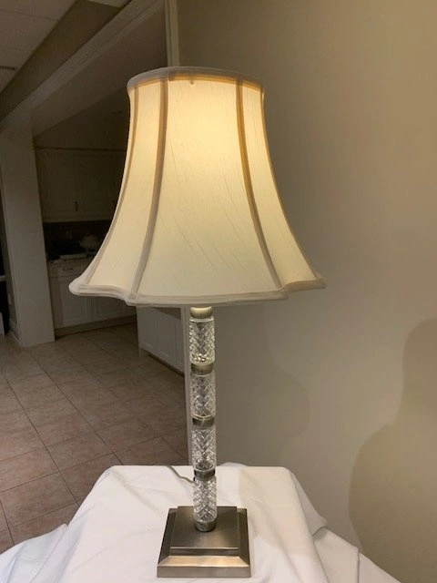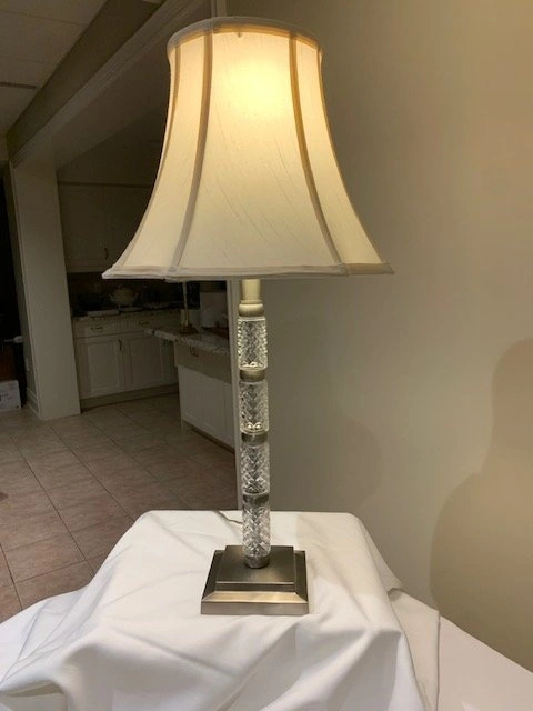 Stunning Crystal Cut Pillar Table Lamp. Height 29 ". Base 5 ". Pristine Condition. Smoke Free - Pet Free Home. Located Richmond Hill - Bathurst and King Rd. Cash Only.