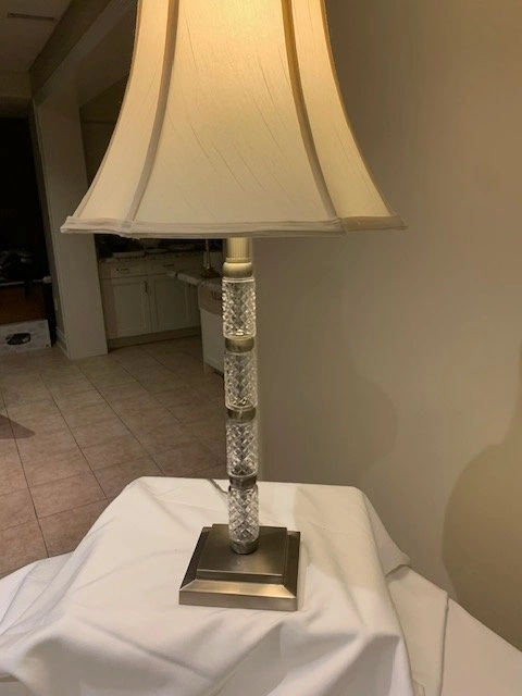 Stunning Crystal Cut Pillar Table Lamp. Height 29 ". Base 5 ". Pristine Condition. Smoke Free - Pet Free Home. Located Richmond Hill - Bathurst and King Rd. Cash Only.