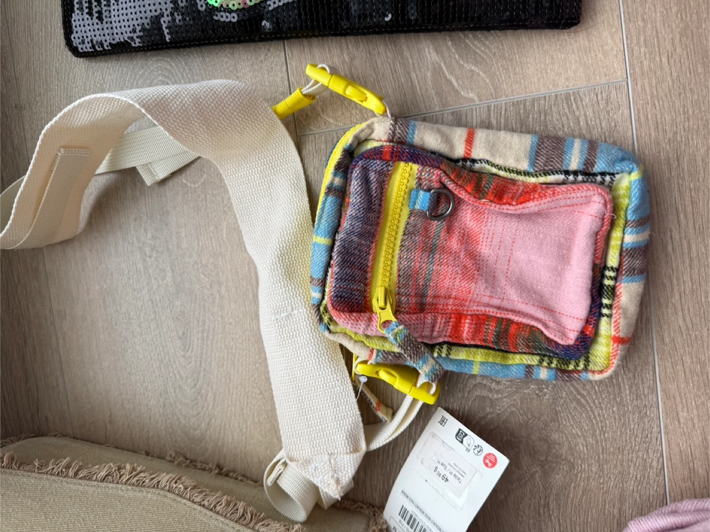 One is a beige crossbody bag from Zara. It features a fringed detail and a zippered main compartment.