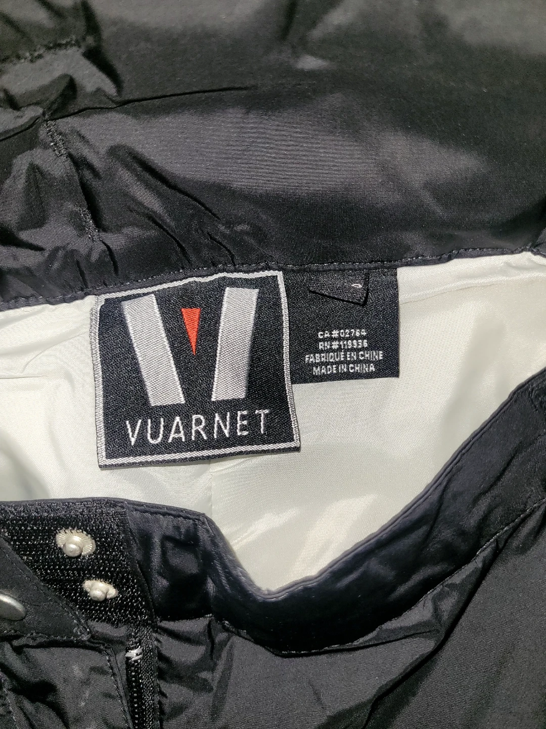 Black ski pants from Vuarnet. These pants are built for warmth and protection on the slopes. They're made with a durable outer shell and insulated lining.