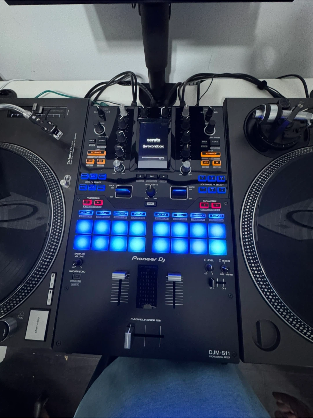 Professional DJ mixer with a 4.3-inch touchscreen for controlling Serato DJ Pro. It's got a Magvel Fader Pro for precise control and plenty of performance pads! Great for any serious DJ setup.
