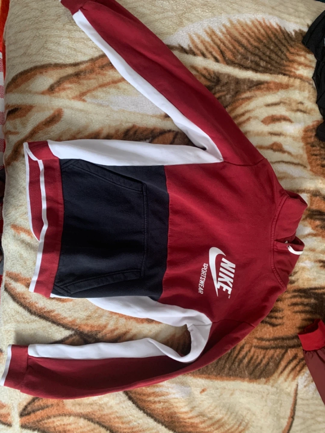 This Nike Sportswear hoodie comes in a bold colour block design. It features a kangaroo pocket and the classic Nike logo. Perfect for casual wear!