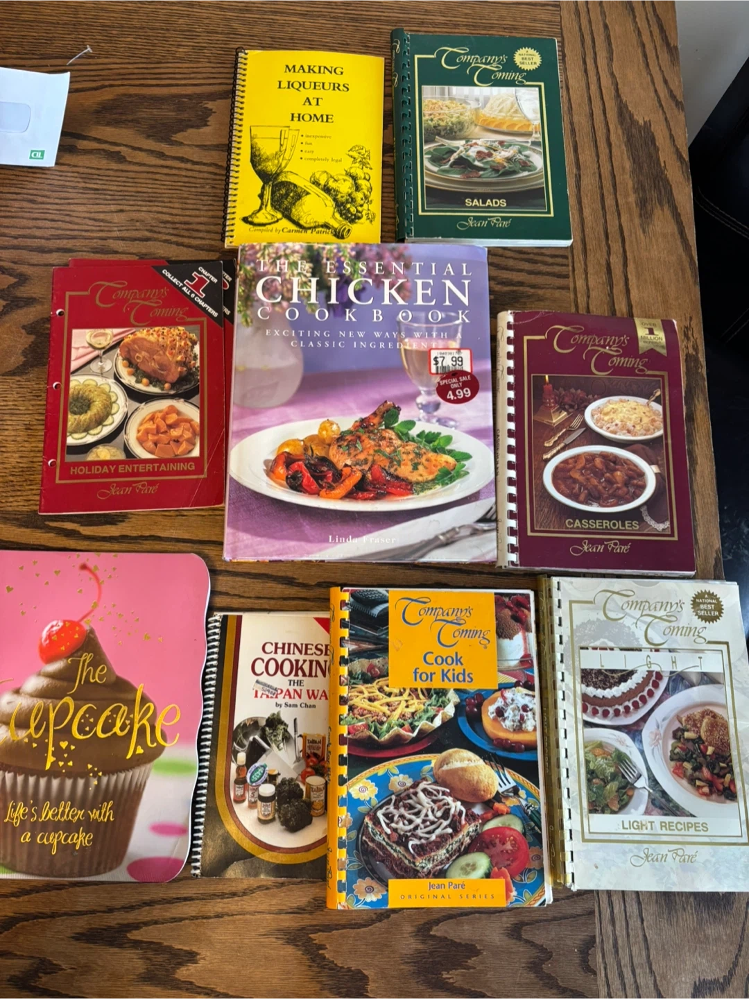 This lot includes 8 Company's Coming cookbooks and 1 cupcake themed cookbook. Titles include Holiday Entertaining, Essential Chicken Cookbook, Casseroles, Salads, Light Recipes, Cook for Kids, Chinese Cooking, and Making Liqueurs at Home. These are great for anyone who loves to cook!