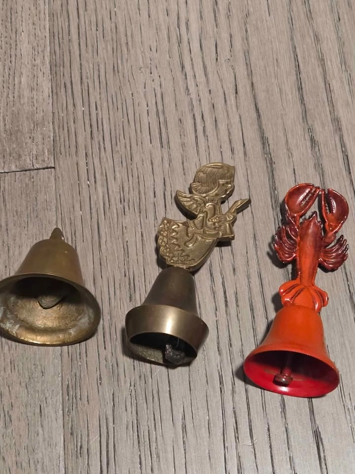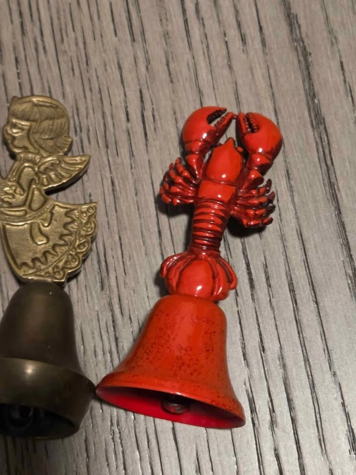 Includes a singing angel bell (brass), a shorter old bell (brass), and a metal lobster dinner bell. All are vintage and in good condition. Fabulous collection. Pick up in Oshawa near Ritson and Hillcroft.