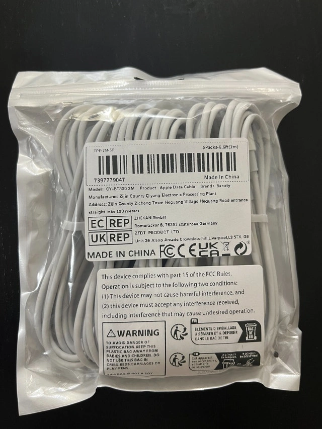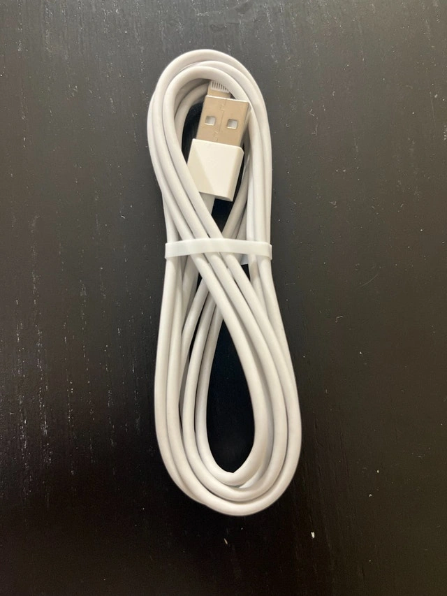 New, durable, anti-tangle USB charging cable for iPhones. Long length (6.6ft/2m). Compatible with iPhone 14/14 Pro, 13/13 Pro, 12/12 Mini, 12 Pro Max, 11 Pro, X, XS, XR. Cash and cashless payments accepted. Owner selling. Curbside pickup available.