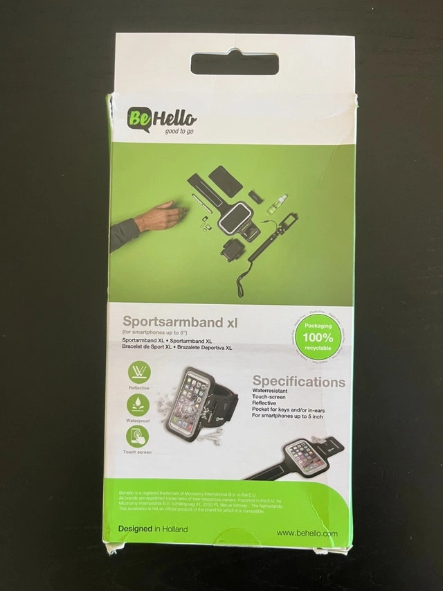 Never used sports arm band for phones up to 5". Water resistant and holds keys and in-ear headphones. Cash and cashless payments accepted. Owner selling. Curbside pickup available.