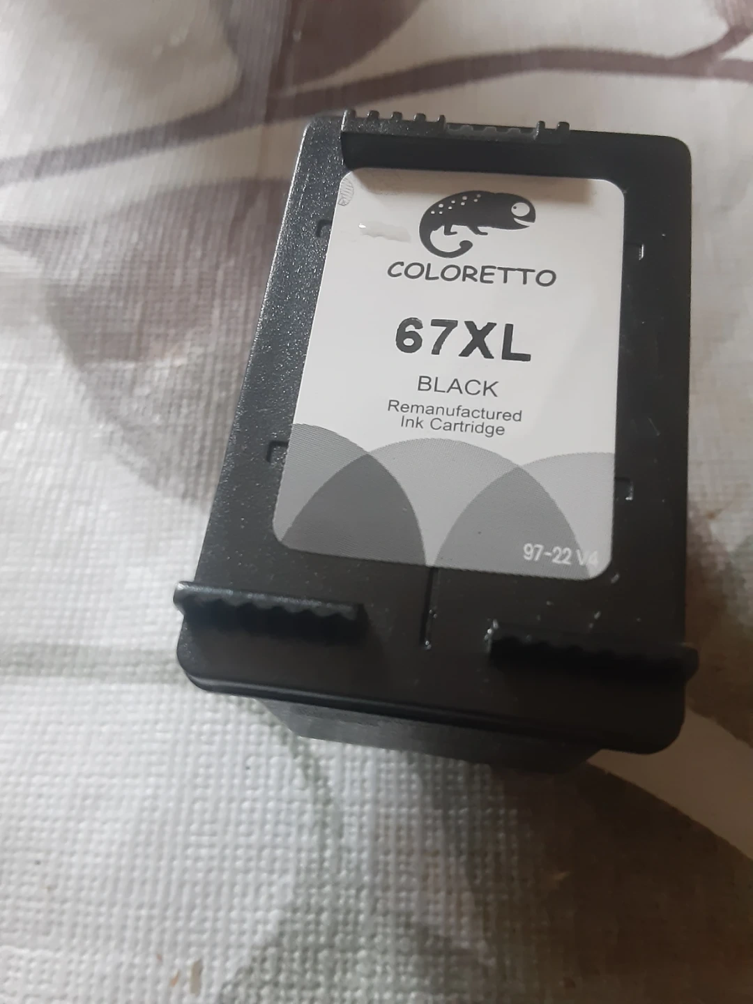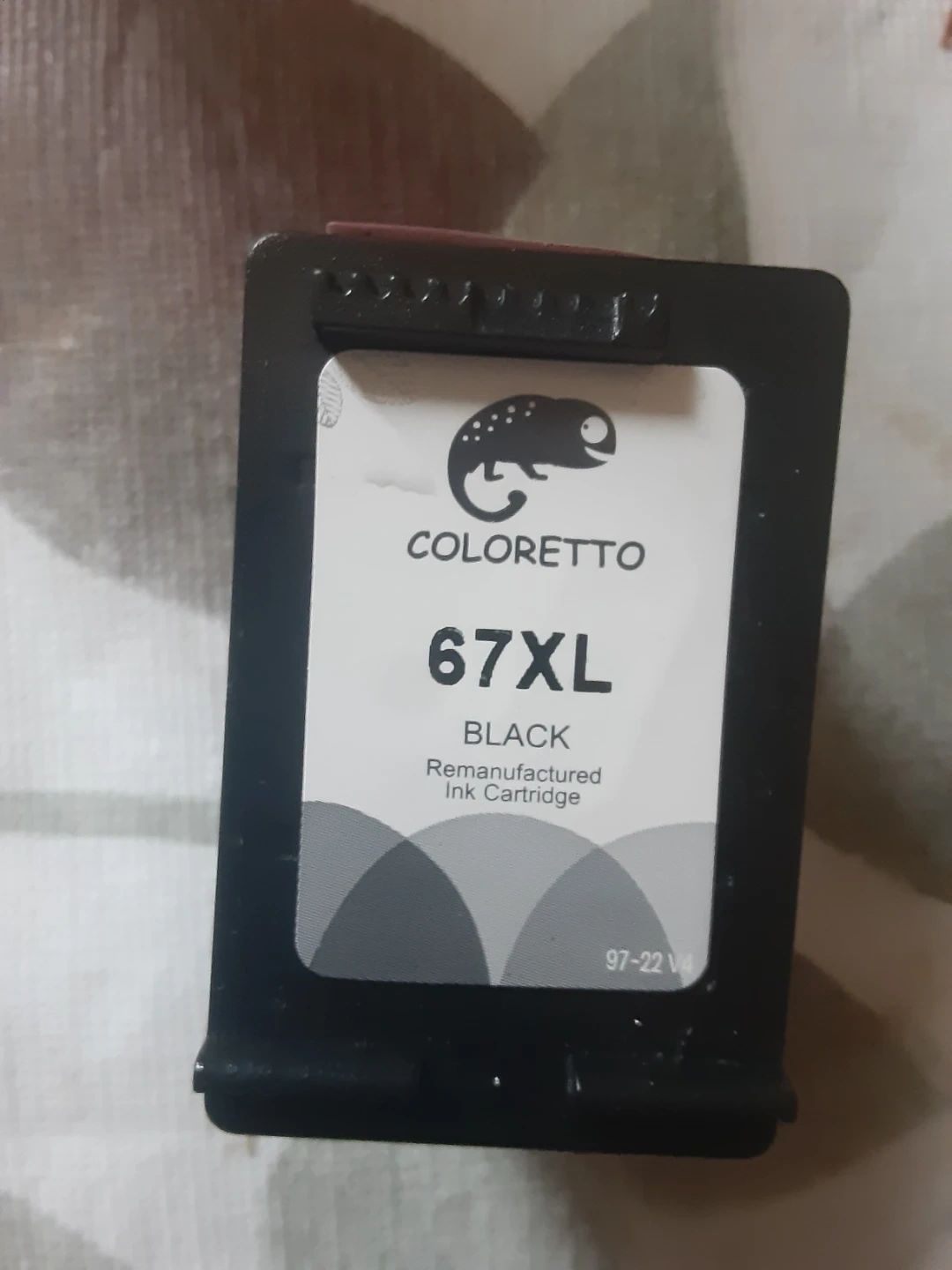 This is a used COLORETTO 67XL black remanufactured ink cartridge. It's an XL size for higher yield. Works with compatible printers.works with a lot of Hp printers.