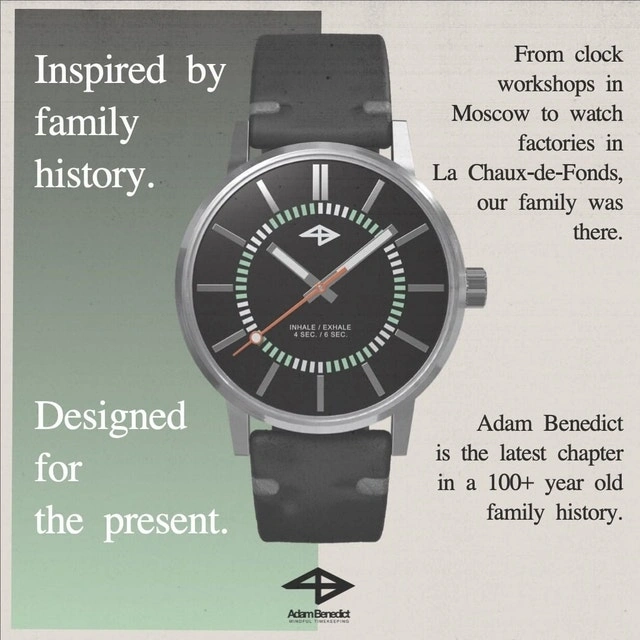 Up for sale is the Adam Benedict Genesis 01, a limited edition watch from an emerging microbrand with a history tracing back to the 1910s. This is their very first model, with only 50 pieces ever made. It features a striking matte black dial with applied markers, two-tone lume for the minute/second markers, and a vibrant orange seconds hand. The durable 316L steel case measures 40mm and houses a reliable Swiss Ronda 704 quartz movement, known for its accuracy. The watch is protected by an anti-reflective sapphire crystal and is water-resistant up to 100 meters. It comes with both a genuine Italian leather strap and an additional NATO-style strap. This American-assembled watch is noted for its exceptional quality and was a contender for the 2022 GPHG Awards. It's brand new and includes the original cedar presentation box, canvas travel pouch, orange NATO strap, spring bar tool, and microfiber cloth. Price is $350. Available for cash or cashless payment. Owner is selling.