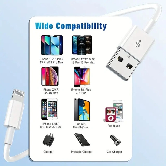 New USB charging cable, 1m/3.3ft Lightning cable. Durable, anti-tangle material. See pictures for compatible models. Cash accepted. Curbside pickup available.
