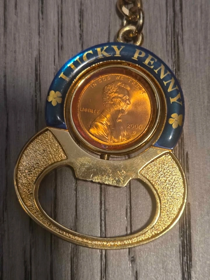 Set of 2 vintage Hawaii souvenir keychains featuring encased Lincoln pennies. One reads “Aloha Hawaii”, the other “Lucky Penny” with a built-in bottle opener. Great retro travel souvenirs, collectible pieces, or fun everyday keychains. Good vintage condition. Pennies secure.