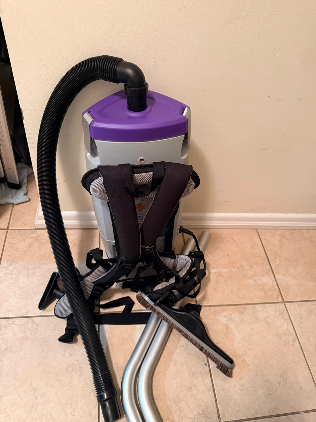 ProTeam Super Coach Pro 10 backpack vacuum cleaner.