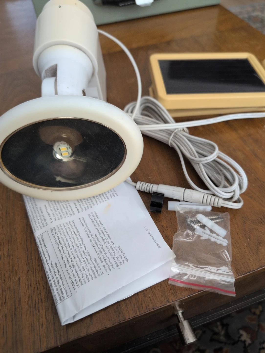 Heath Zenith motion-activated security light with an amorphous solar panel. Features adjustable motion detection and a light-on time up to 1 minute. Includes easy mount bracket and a 15' power cord. It's LED and never needs a bulb change!