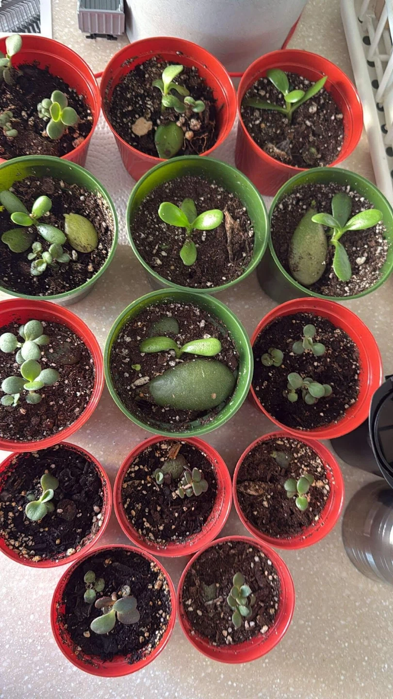 This listing includes several small succulent plants, each in its own pot. Varieties appear to be Jade plants and others. They're ready for a sunny spot to grow! Great for starting a new plant collection or adding to an existing one.