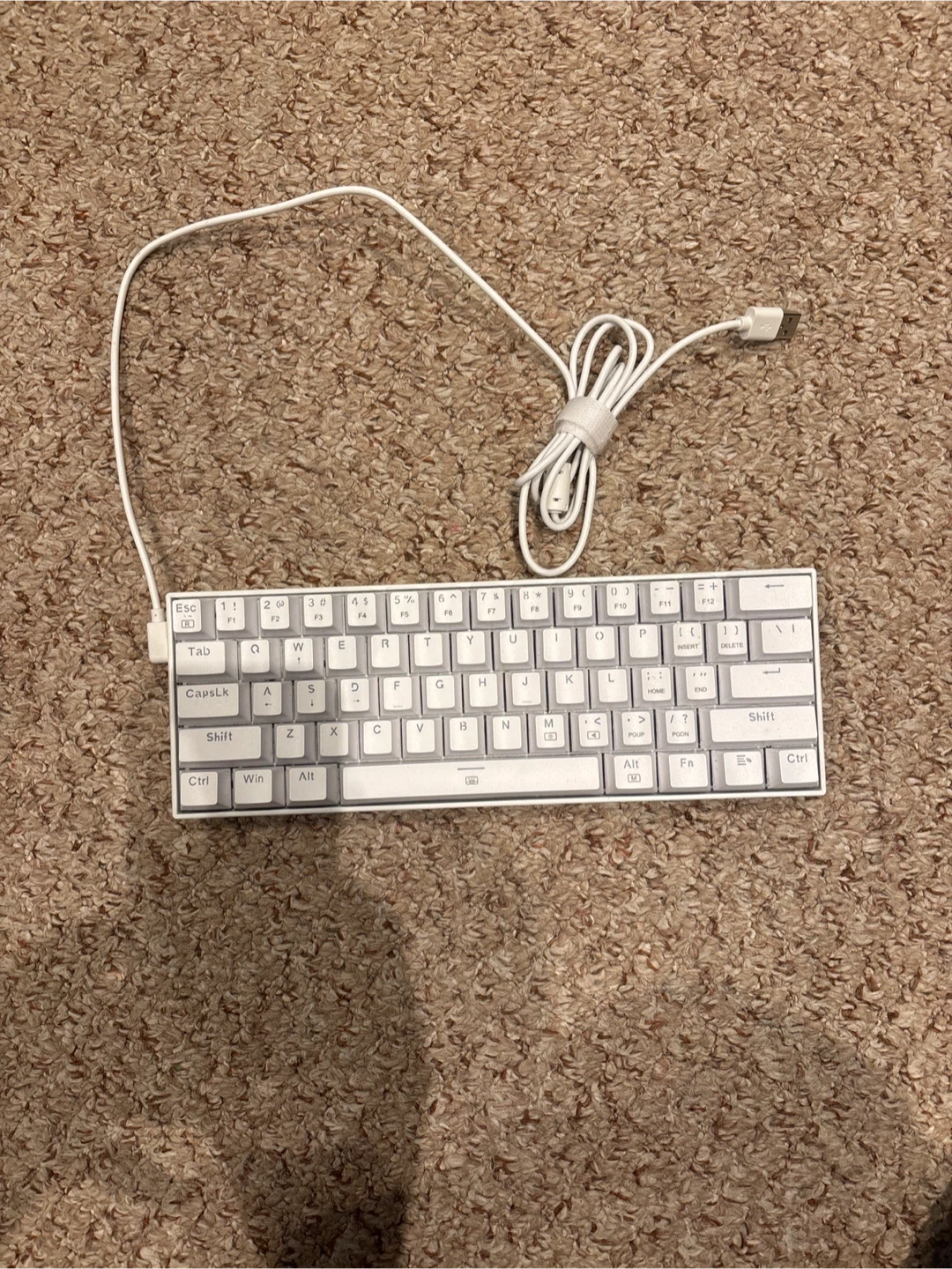 Buy & SellWhite 60% Mechanical Keyboard with USB CableWhite 60% Mechanical Keyboard with USB Cable$50This is a white 60% mechanical keyboard. It connects via USB and includes its original cable. The keyboard is compact and ideal for saving desk space.ConditionLike newWHERE TO MEETCheck LocationView MapSELLERverifiedJoeRichview18411 reviews2 chats·0 favorites·21 viewsSEND CHAT TO SELLERHi Joe! I’m interested in your listing.Hi Joe! I’m interested in your listing.Get the Karrot app to chatSign In to chat