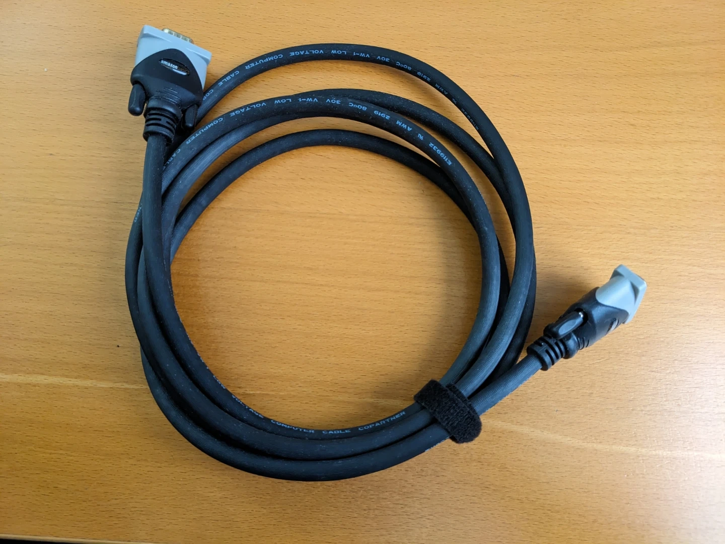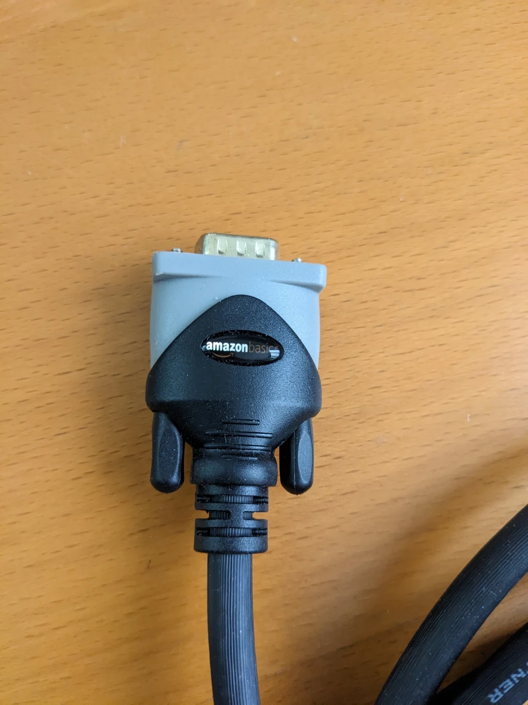 Amazon Basics VGA cable for connecting monitors or projectors. It's a 6-foot cord with thumbscrews for secure connection. Great for computers and displays!