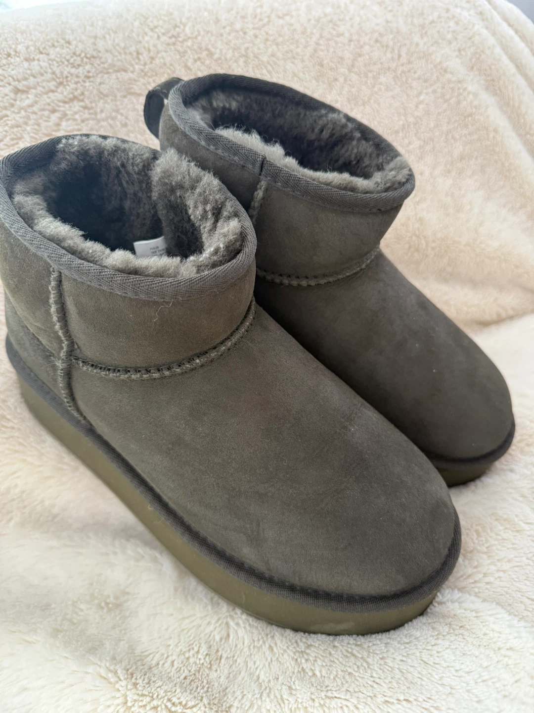 Warm Emu Australia boots with a platform sole. Made with sheepskin lining for comfort. Great for chilly weather!