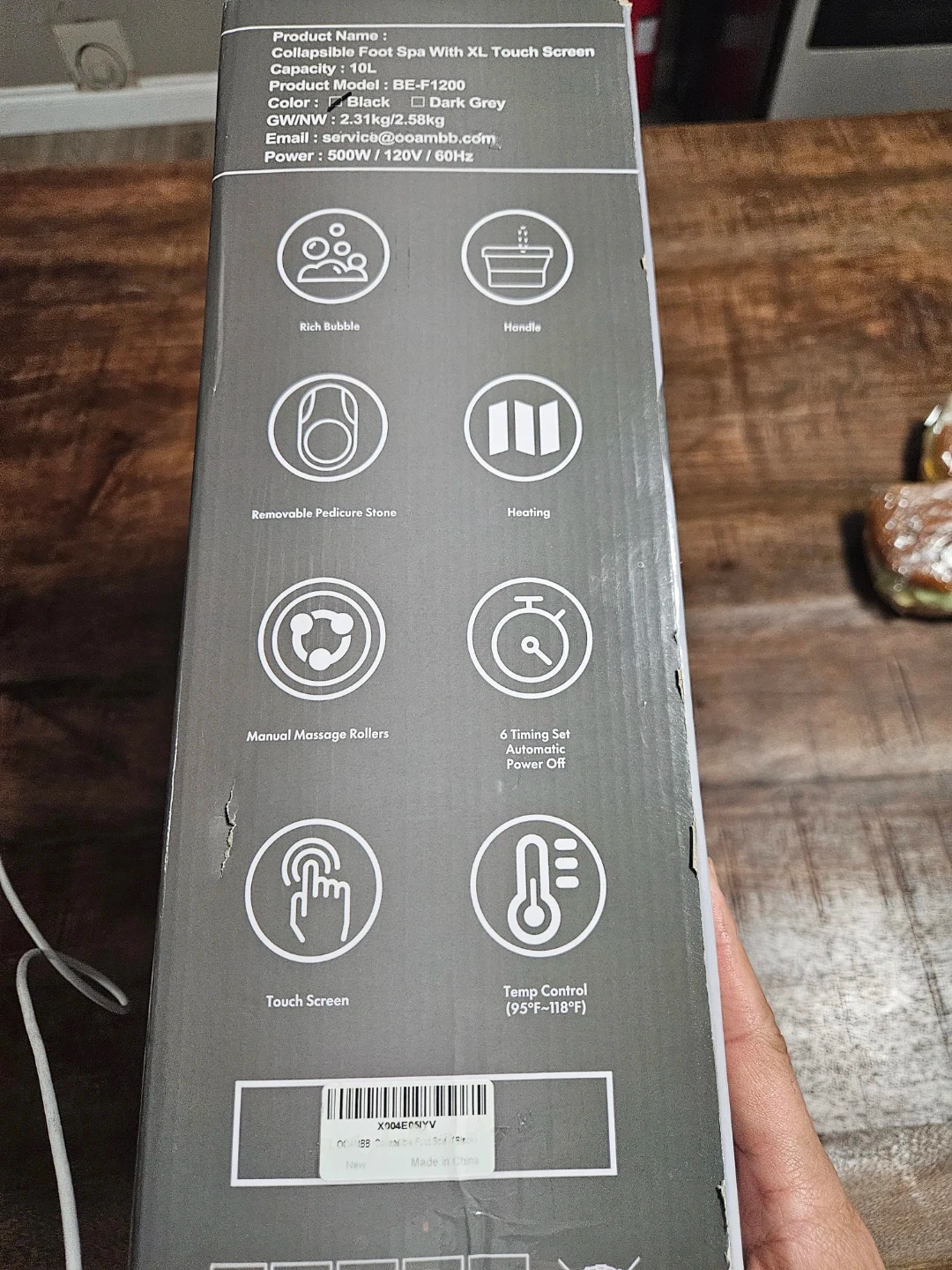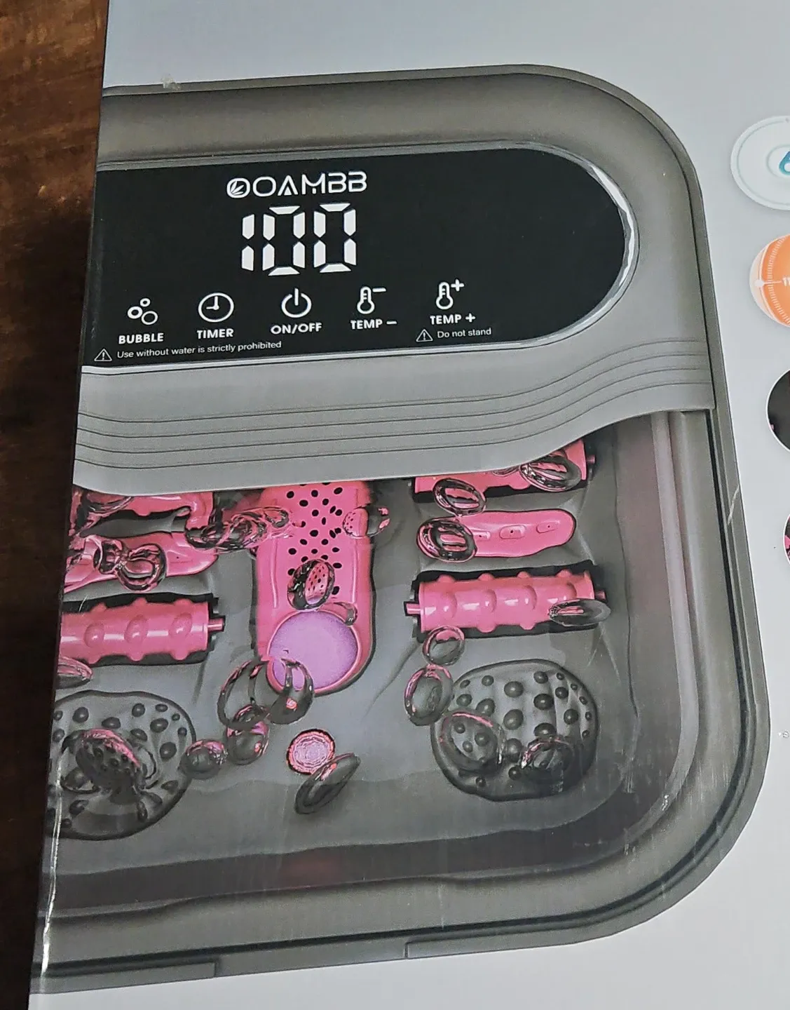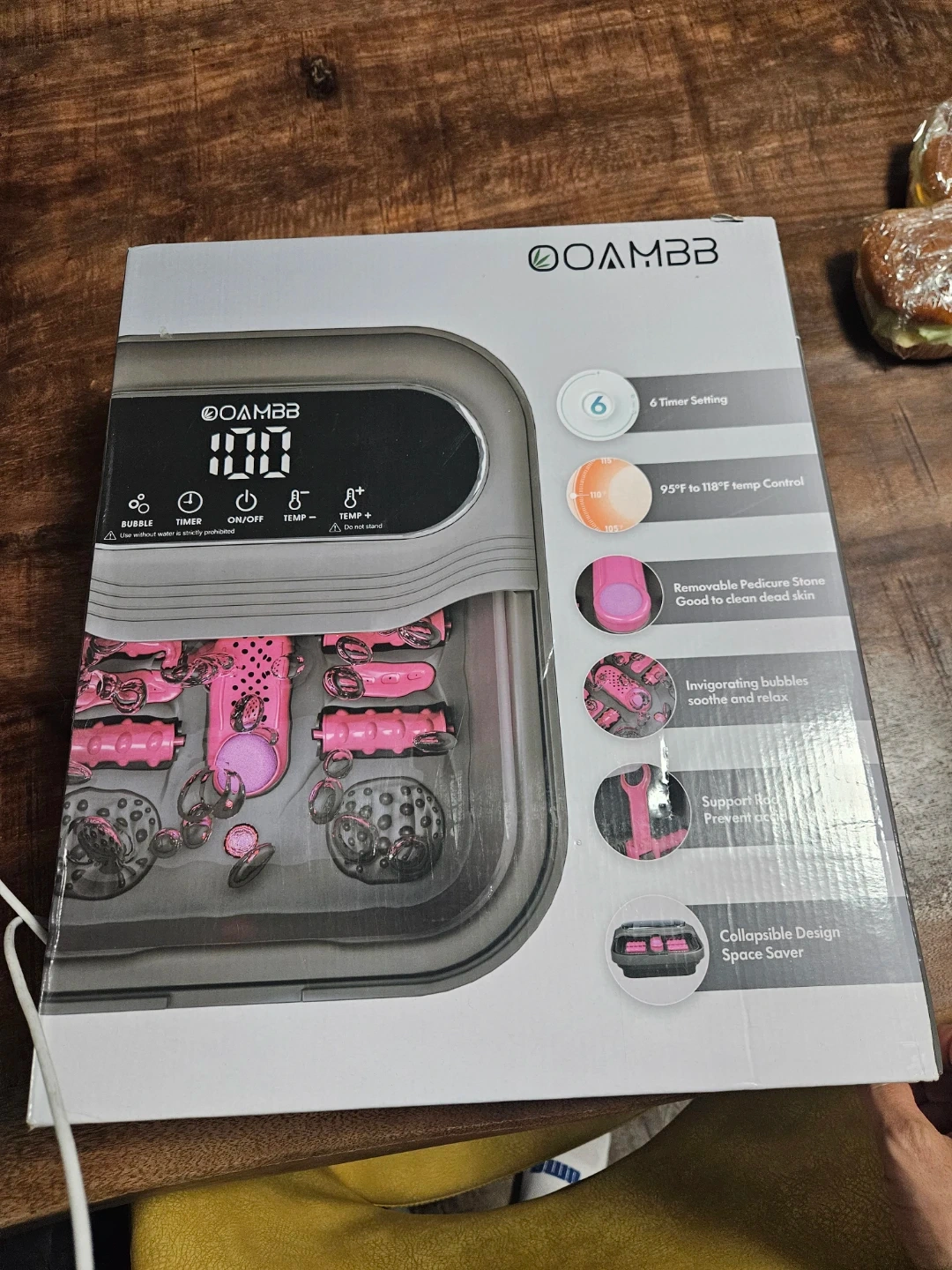This OAMBB foot spa offers a luxurious at-home pedicure experience. It features rich bubble action, manual massage rollers, and a removable pedicure stone for gentle exfoliation. The temperature control ranges from 95°F to 118°F, and it has a 6-timer setting with automatic power off. Its collapsible design makes it a space saver when not in use!new box