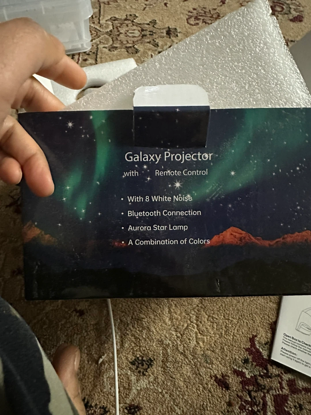 This music aurora projector lamp displays a galaxy with a remote control. It includes 8 white noises and Bluetooth connection. The material is ABS+PC. Great for creating ambience at home!