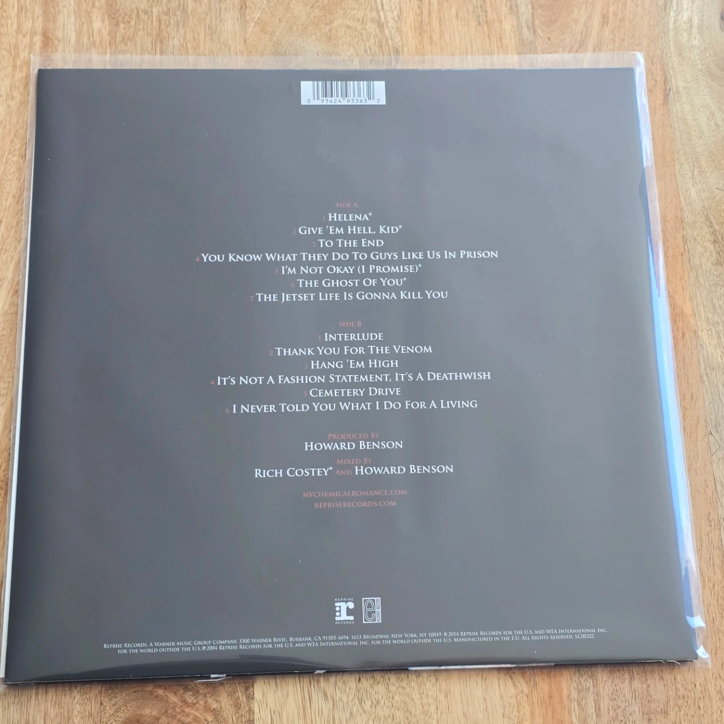 This is the My Chemical Romance album 'Three Cheers for Sweet Revenge' on vinyl LP. It includes tracks like 'Helena' and 'Interlude'. Released in 2004.