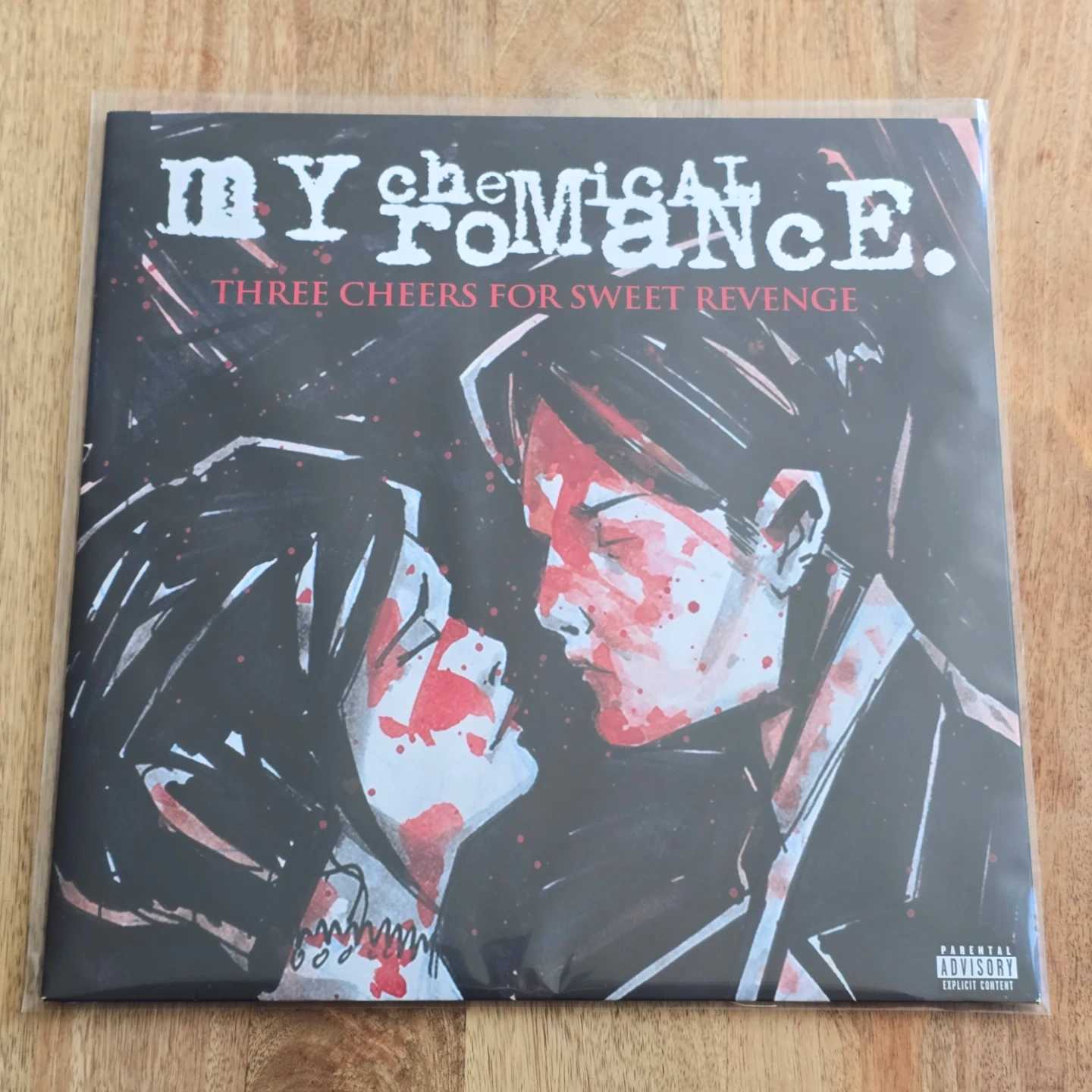 This is the My Chemical Romance album 'Three Cheers for Sweet Revenge' on vinyl LP. It includes tracks like 'Helena' and 'Interlude'. Released in 2004.
