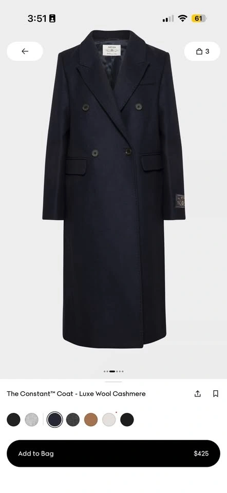 Aritzia Constant Coat - Luxe Wool Cashmere Size L NWT