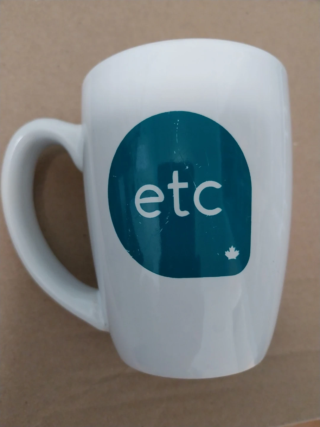 This is a white ceramic mug featuring etc. It's a standard size, perfect for your morning coffee or tea. Made from durable ceramic material.