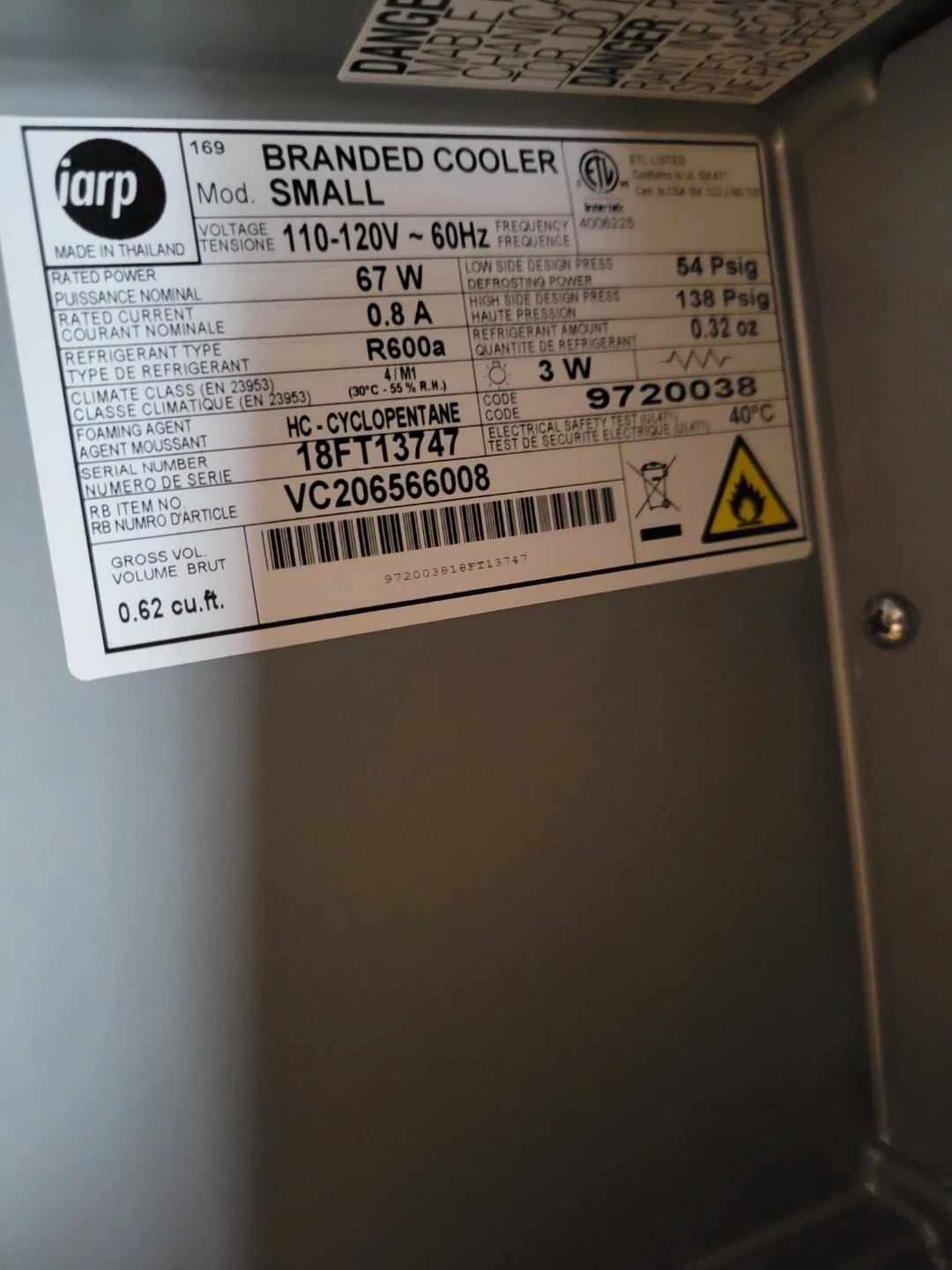 * Type: Bar Fridge