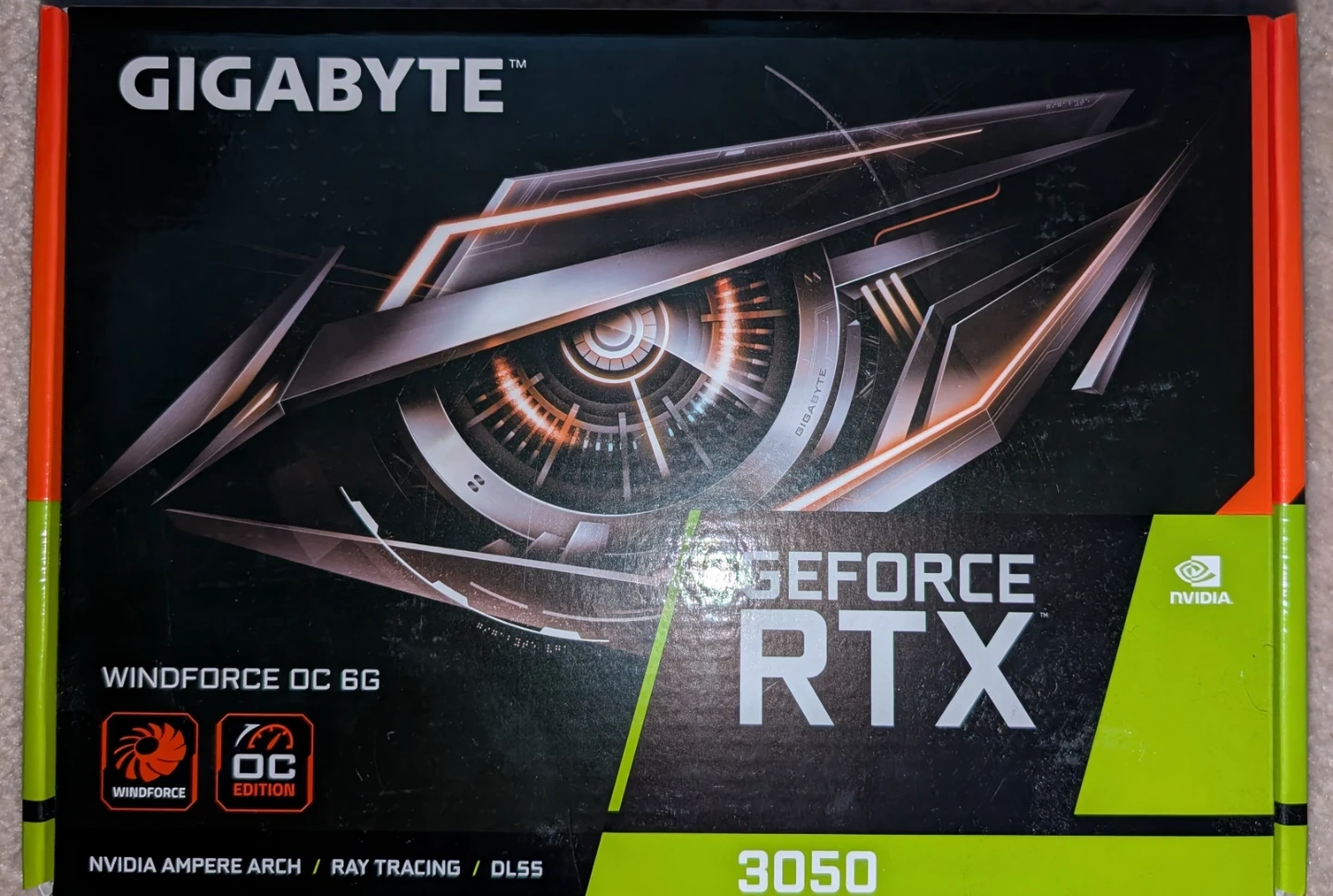 This is a Gigabyte GeForce RTX 3050 Windforce OC 6G graphics card. It features NVIDIA Ampere Arch, Ray Tracing, and DLSS technologies. This card is suitable for gaming and other graphics-intensive tasks.