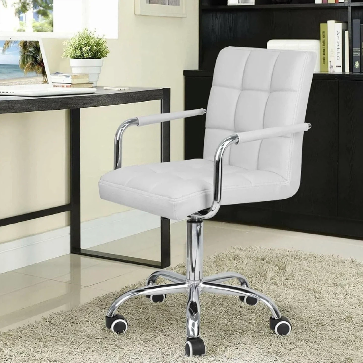 Brighten up your workspace with this brand new, in-box faux leather task chair in a crisp white finish, designed for both style and ergonomic support. This chair adds a modern touch to any office or home setting.
