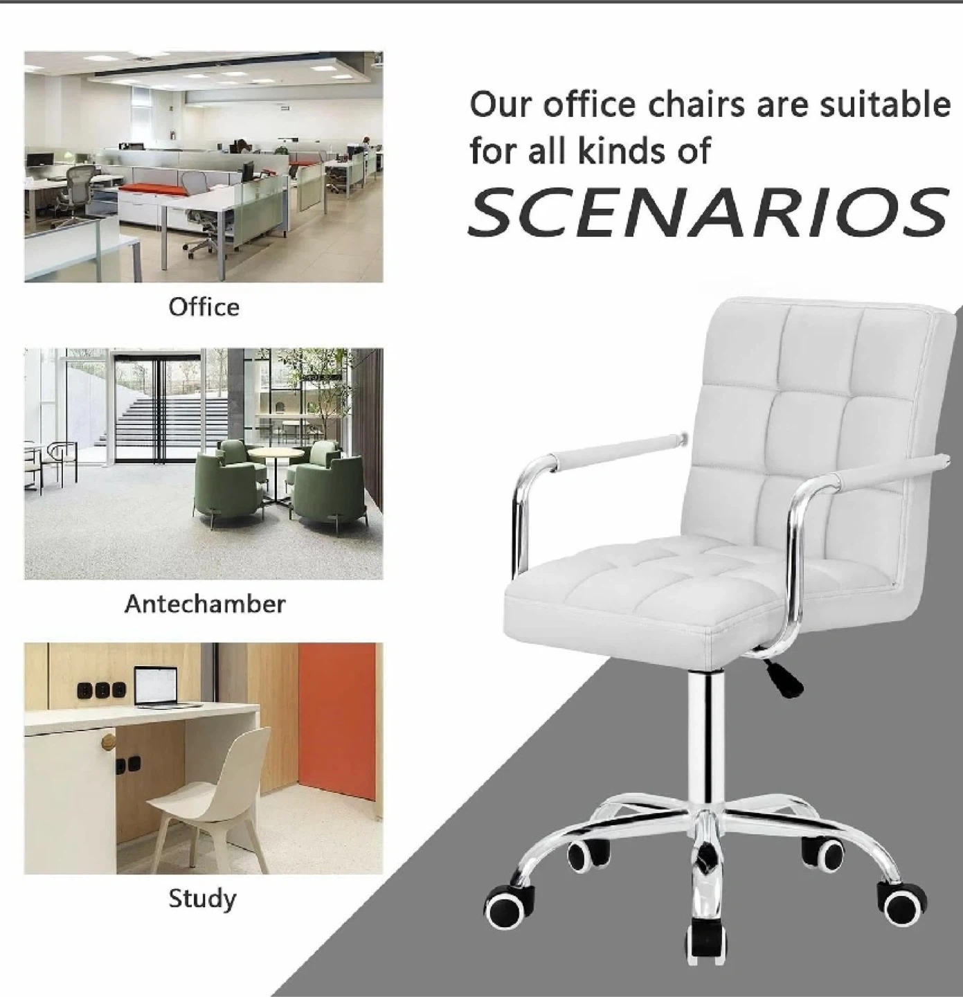 Brighten up your workspace with this brand new, in-box faux leather task chair in a crisp white finish, designed for both style and ergonomic support. This chair adds a modern touch to any office or home setting.