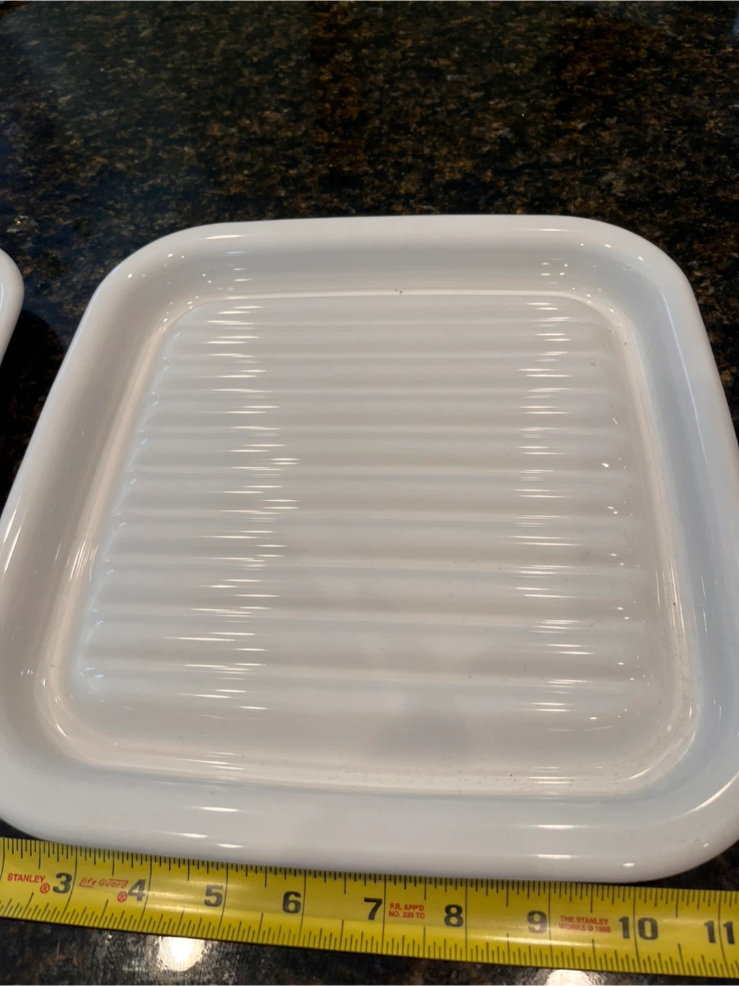 White rectangular baking dish with ribbed interior. Measures approximately 9 inches long. It's suitable for baking or serving.)15 each