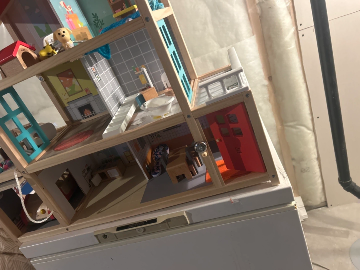 This is a wooden Hape dollhouse with multiple rooms and included accessories like furniture and figures. It features detailed interior designs and a functional garage. Hours of imaginative play await!