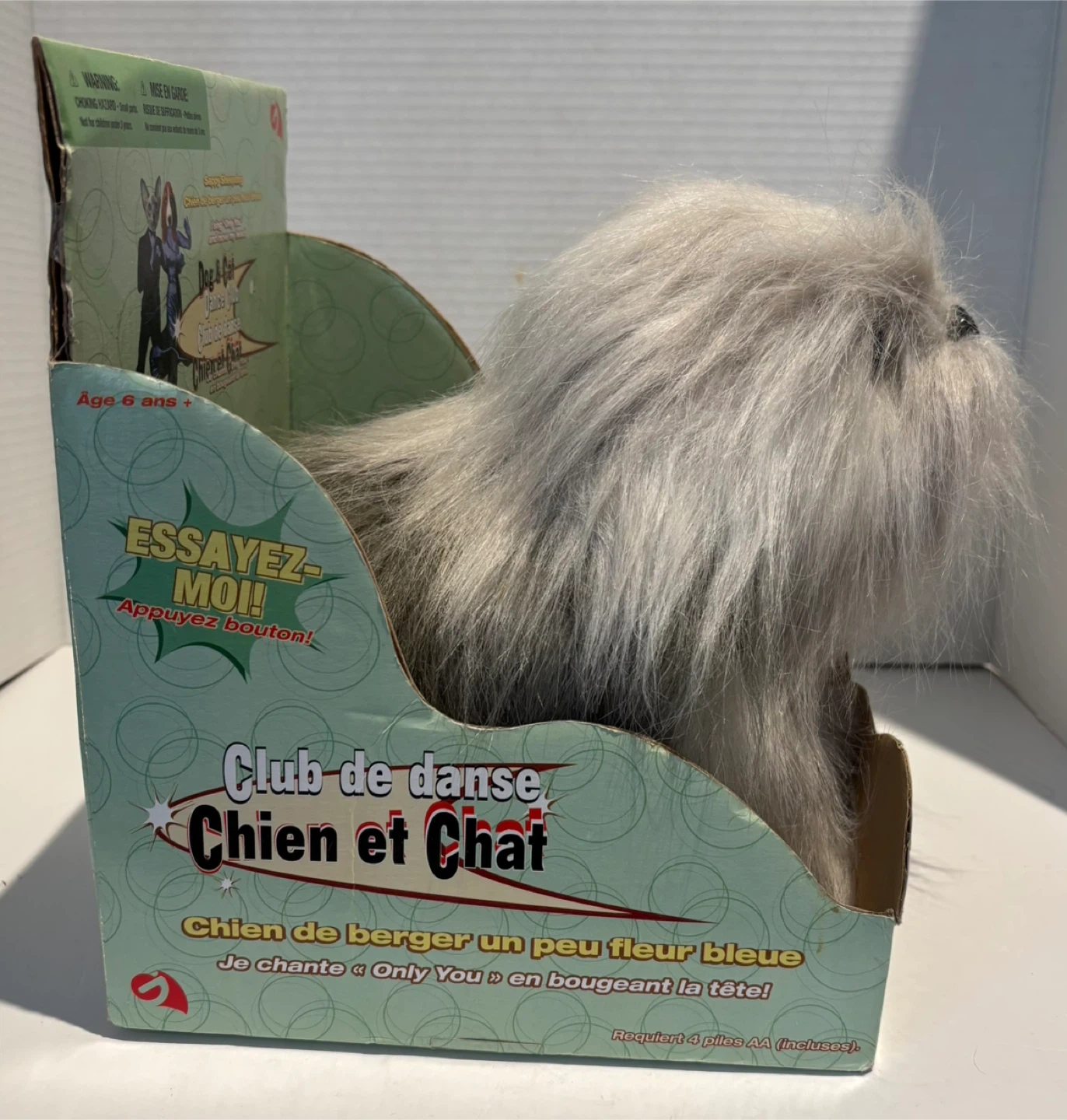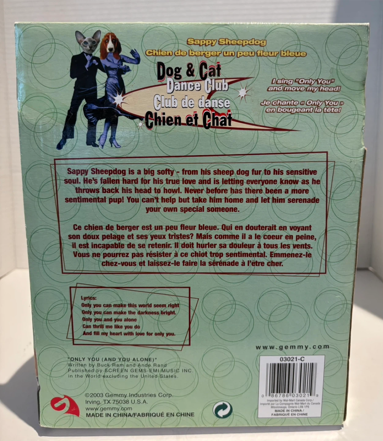 This Gemmy Sappy Sheepdog plush toy is part of the Dog & Cat Dance Club. It sings 'Only You' and moves its head.