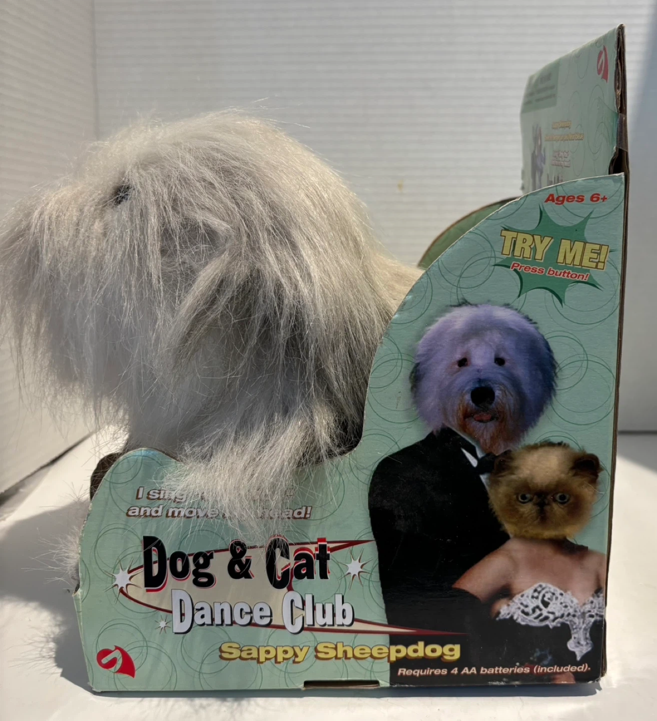 This Gemmy Sappy Sheepdog plush toy is part of the Dog & Cat Dance Club. It sings 'Only You' and moves its head.