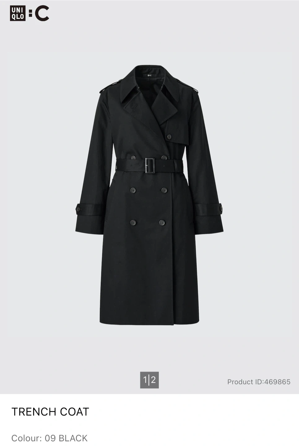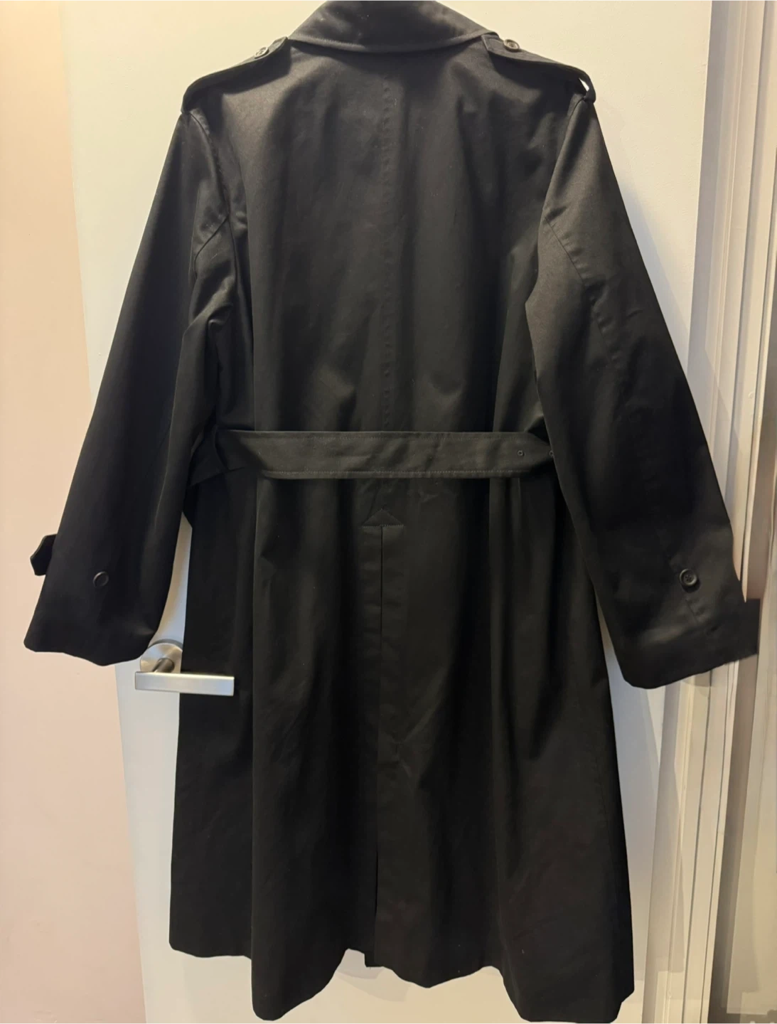 Selling this gently used Uniqlo trench coat in black and size L. It's made of 100% cotton with a 100% polyester lining. It's a classic double-breasted design with a belt. Originally bought it for $149.90 + tax.