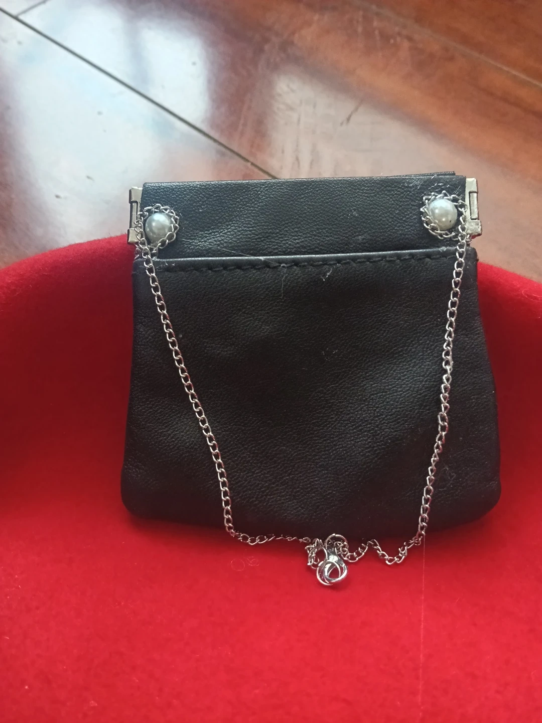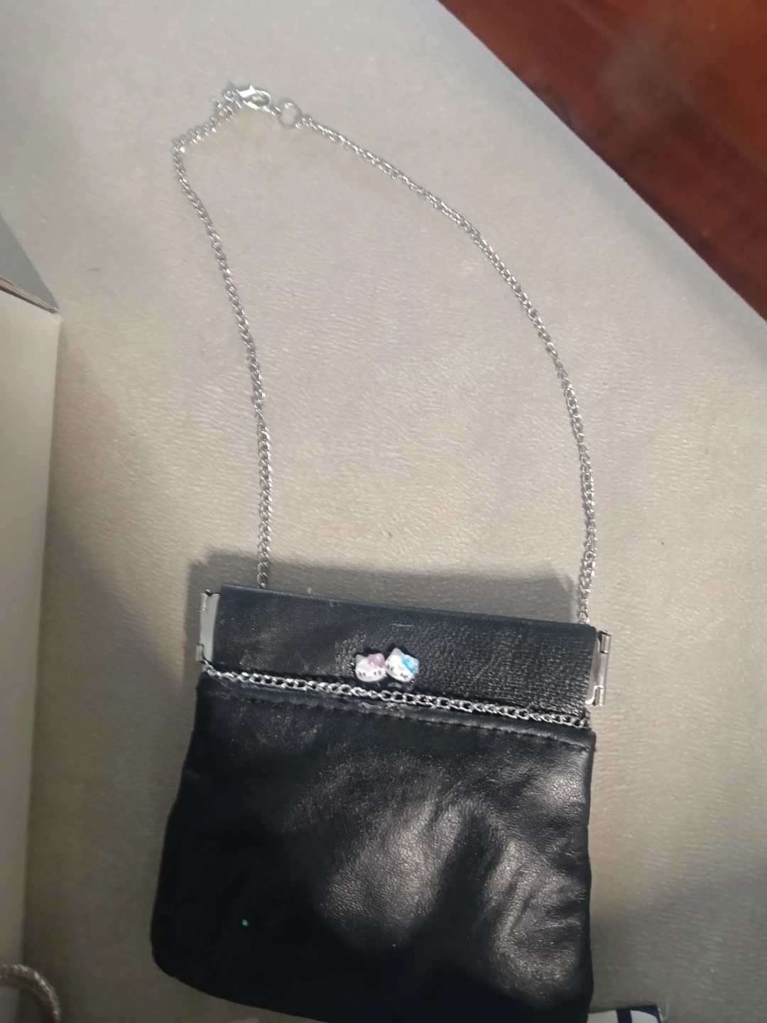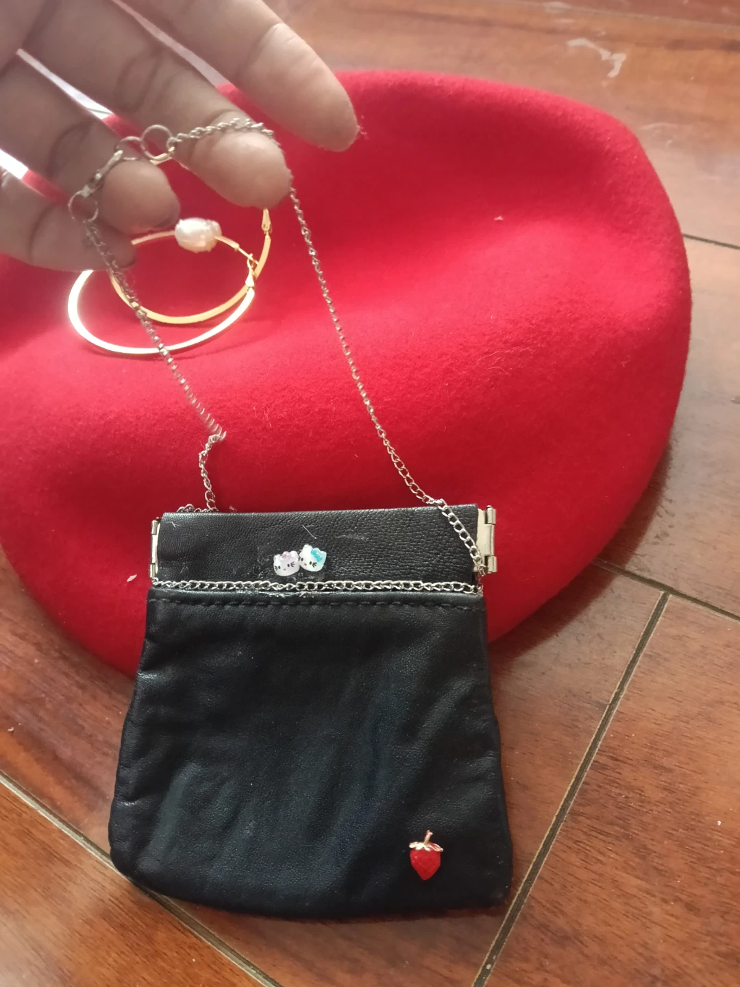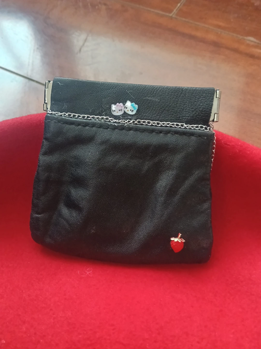 Black coin purse with strawberry charm