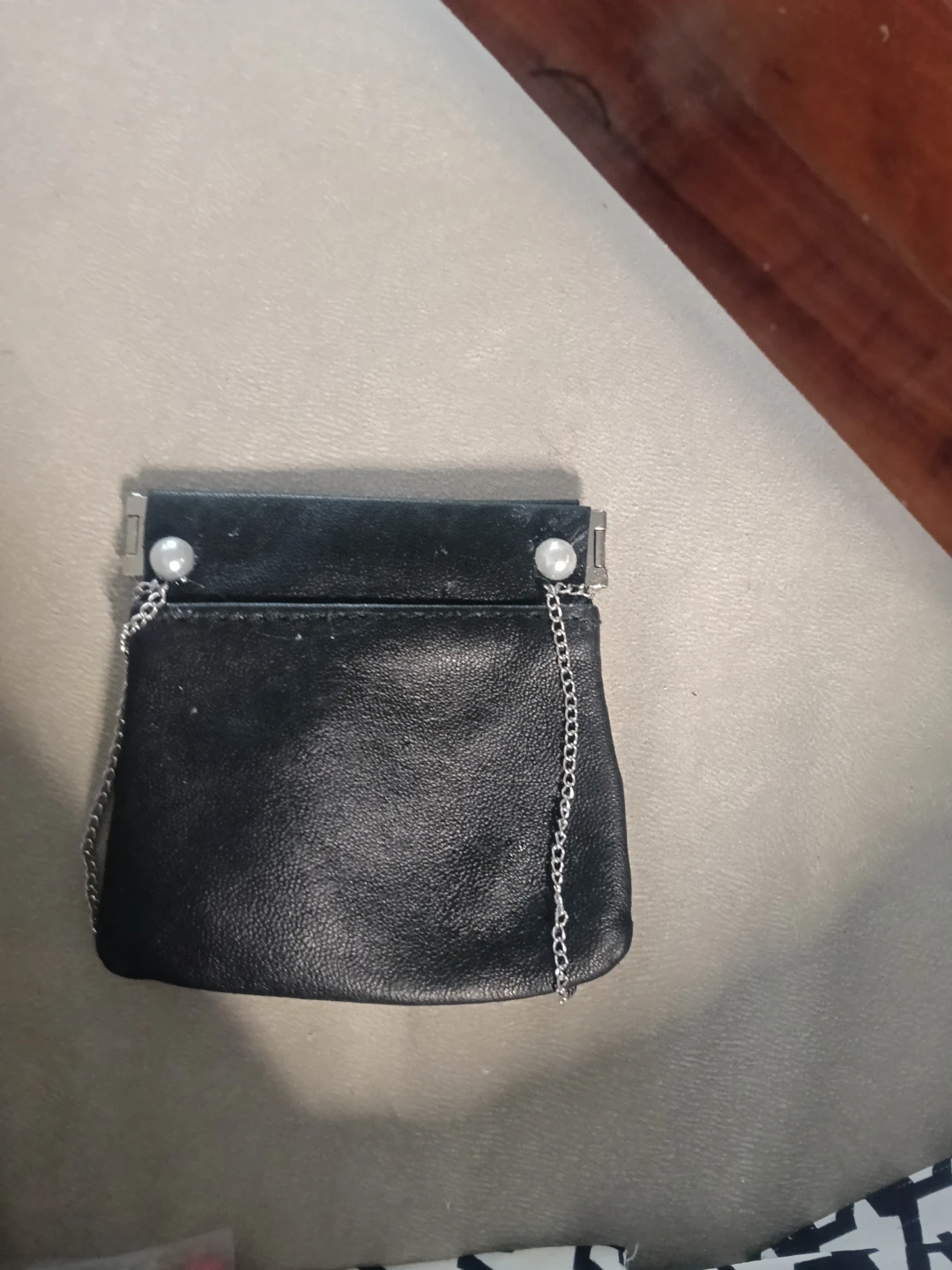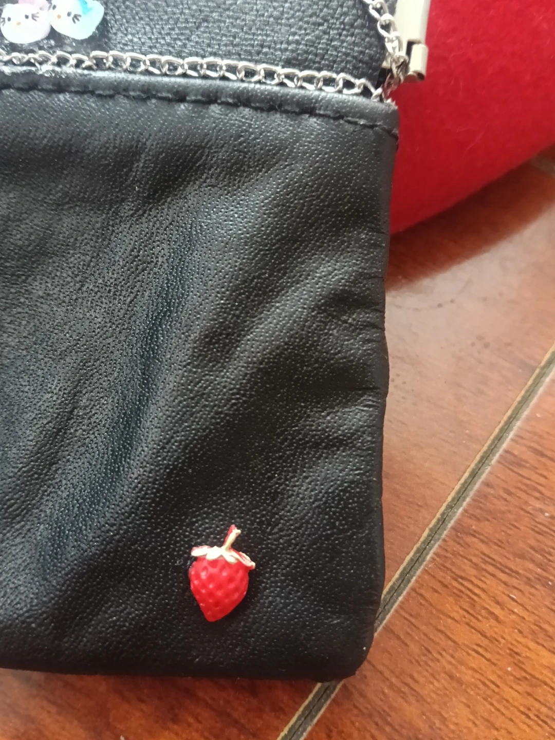 Black coin purse with strawberry charm