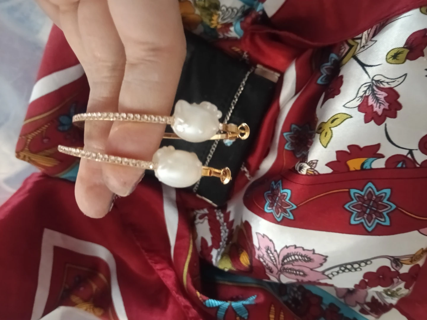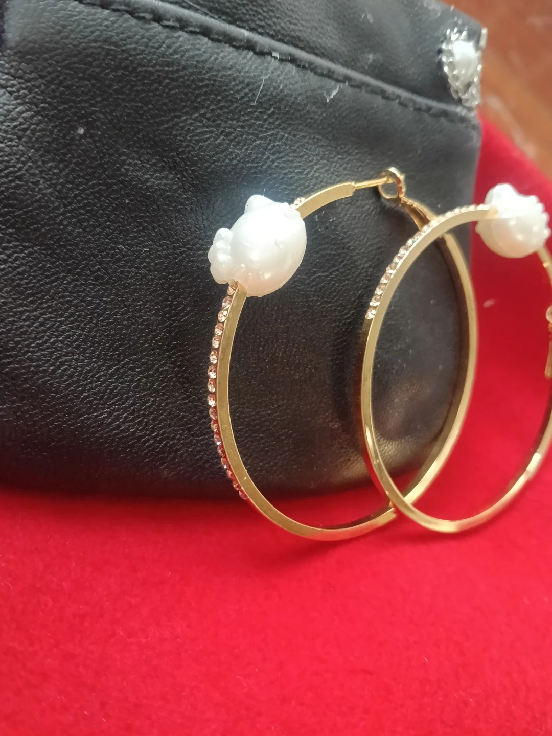 The purse comes with a detachable chain (wear as crossbody or clutch), and includes hypoallergenic, gold-plated Hello Kitty hoop earrings that wonβt fade.