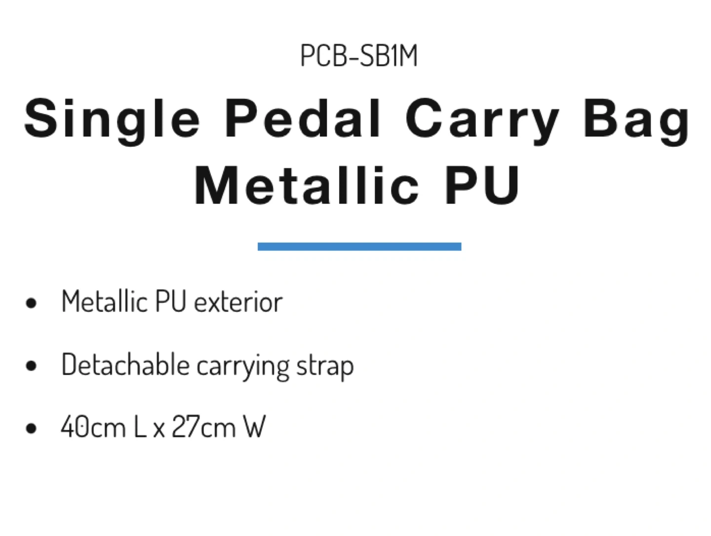 This is a Dixon Single Pedal Carry Bag. It's made with a metallic PU exterior and has a detachable carrying strap. Dimensions are 40cm L x 27cm W. (2 for sale)