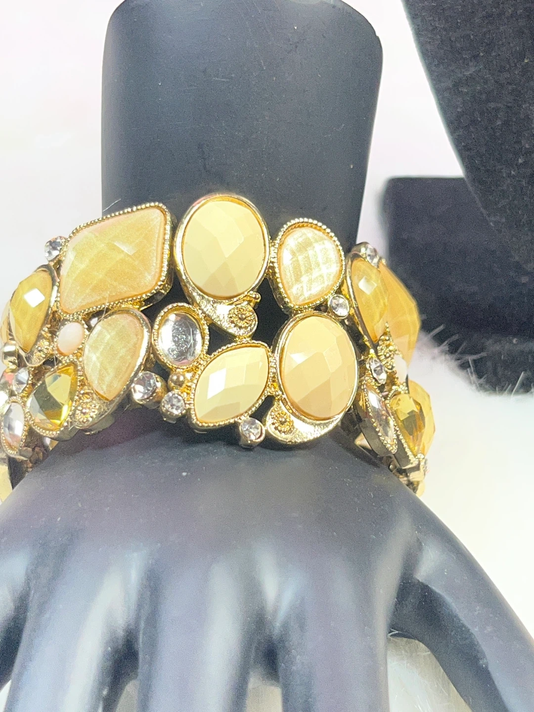 Gold Tone Gemstone & Crystal Stretch Bracelet