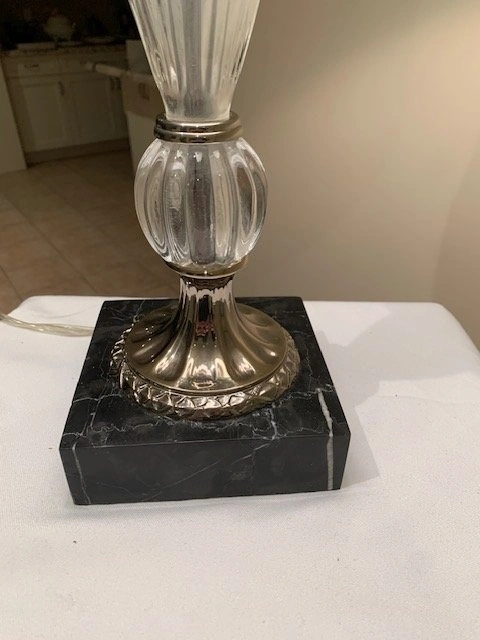 Vintage Crystal Table Lamp - Polished Chrome, Marble Base