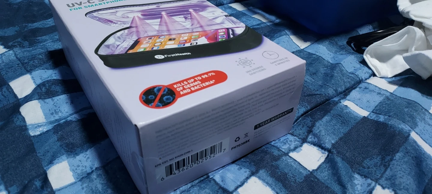 This FirstHealth UV-C sanitizing bag is designed for smartphones and personal items. It claims to kill up to 99.7% of germs and bacteria. Sanitization takes only 5 minutes.