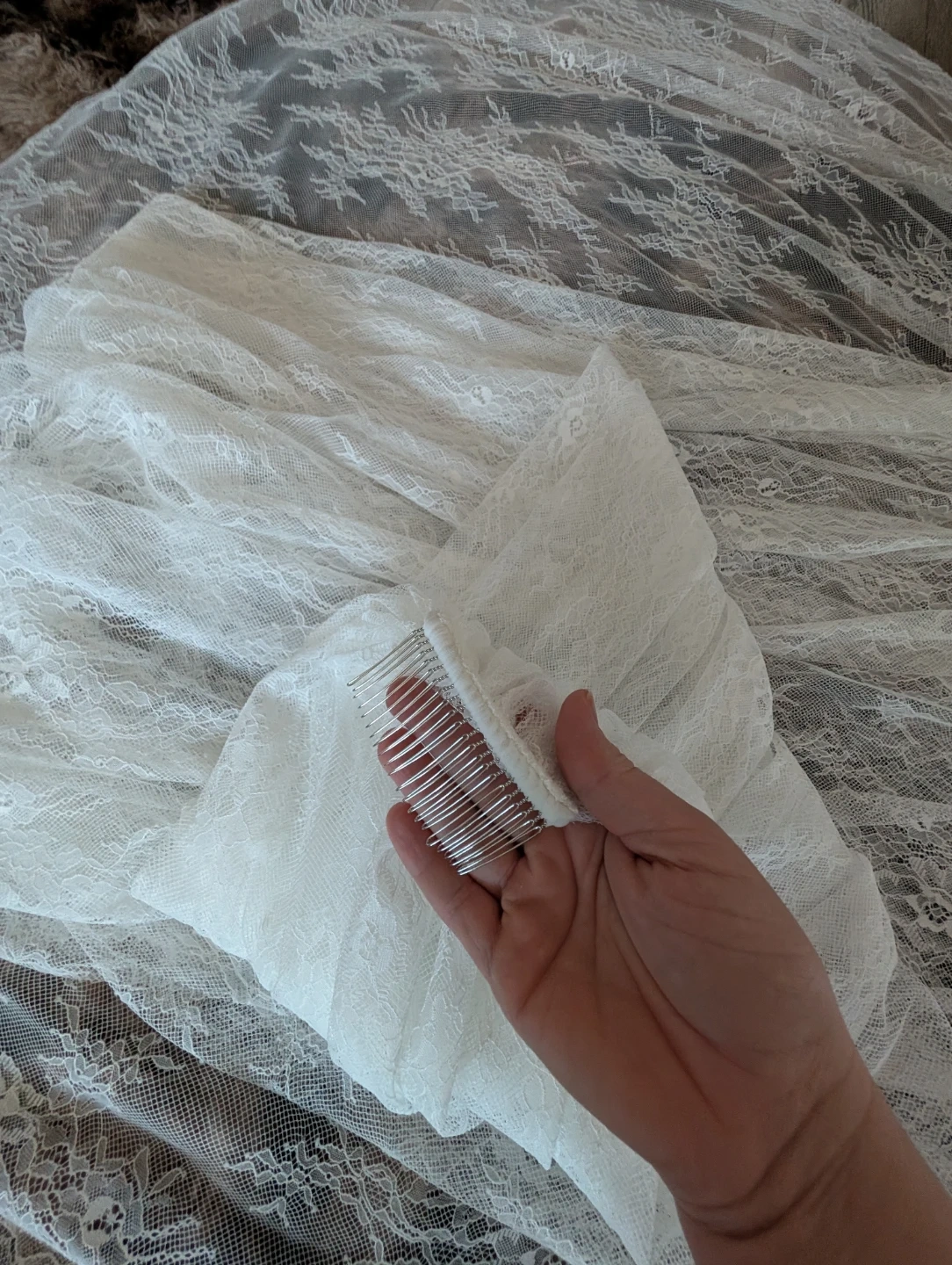 Soft white Lace Cathedral Veil with Comb