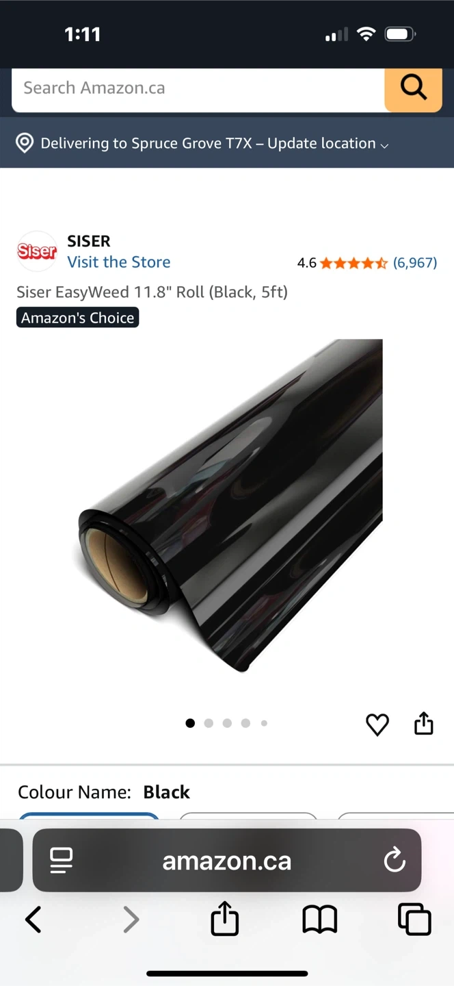 Siser EasyWeed heat transfer vinyl roll in black. This is 11.8 inches wide and 50 feet long. It's great for applying designs to fabric using a heat press.