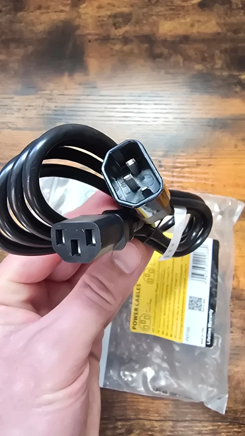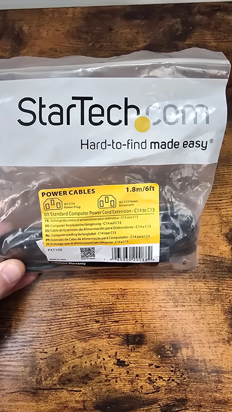 This is a 6-foot power extension cable. It's rated for 10A, 125V, and 1250W. The cable has an IEC C14 plug on one end and an IEC C13 receptacle on the other.