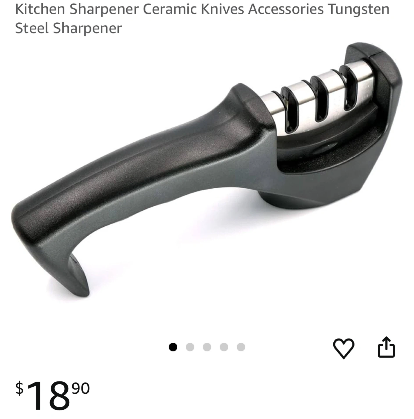 This kitchen knife sharpener features tungsten steel and ceramic slots. It has a black ergonomic handle for a comfortable grip. Keeps your knives sharp and ready for use!